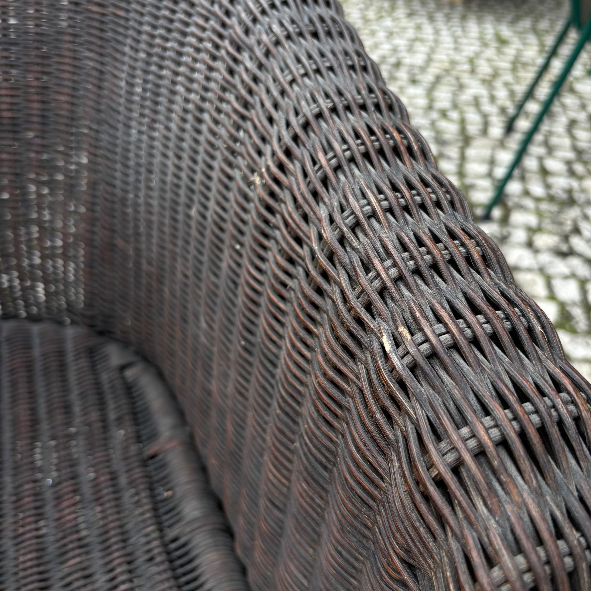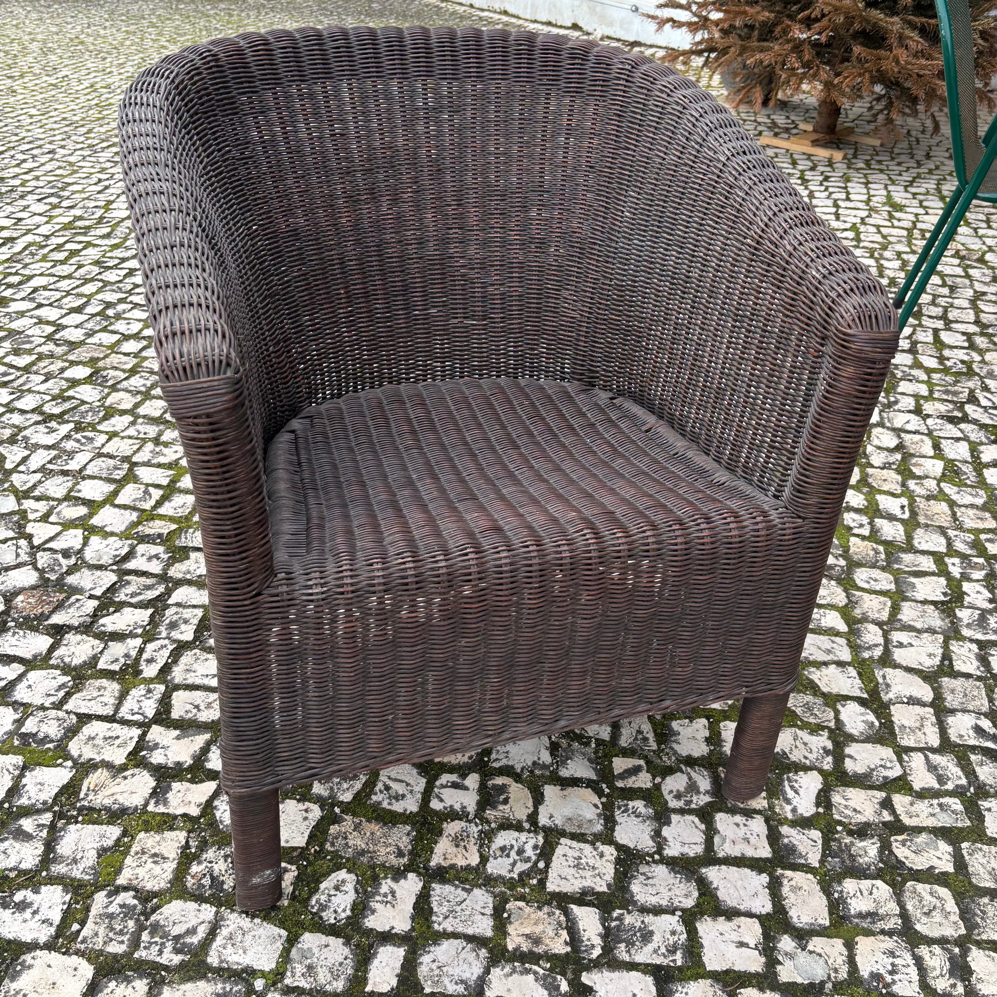 A beautifully crafted woven outdoor armchair in a warm brown finish, featuring an elegant curved back for added comfort and style. Durable and weather-ready, it’s perfect for patios, terraces or garden spaces, offering a relaxed yet refined seating option for outdoor living.