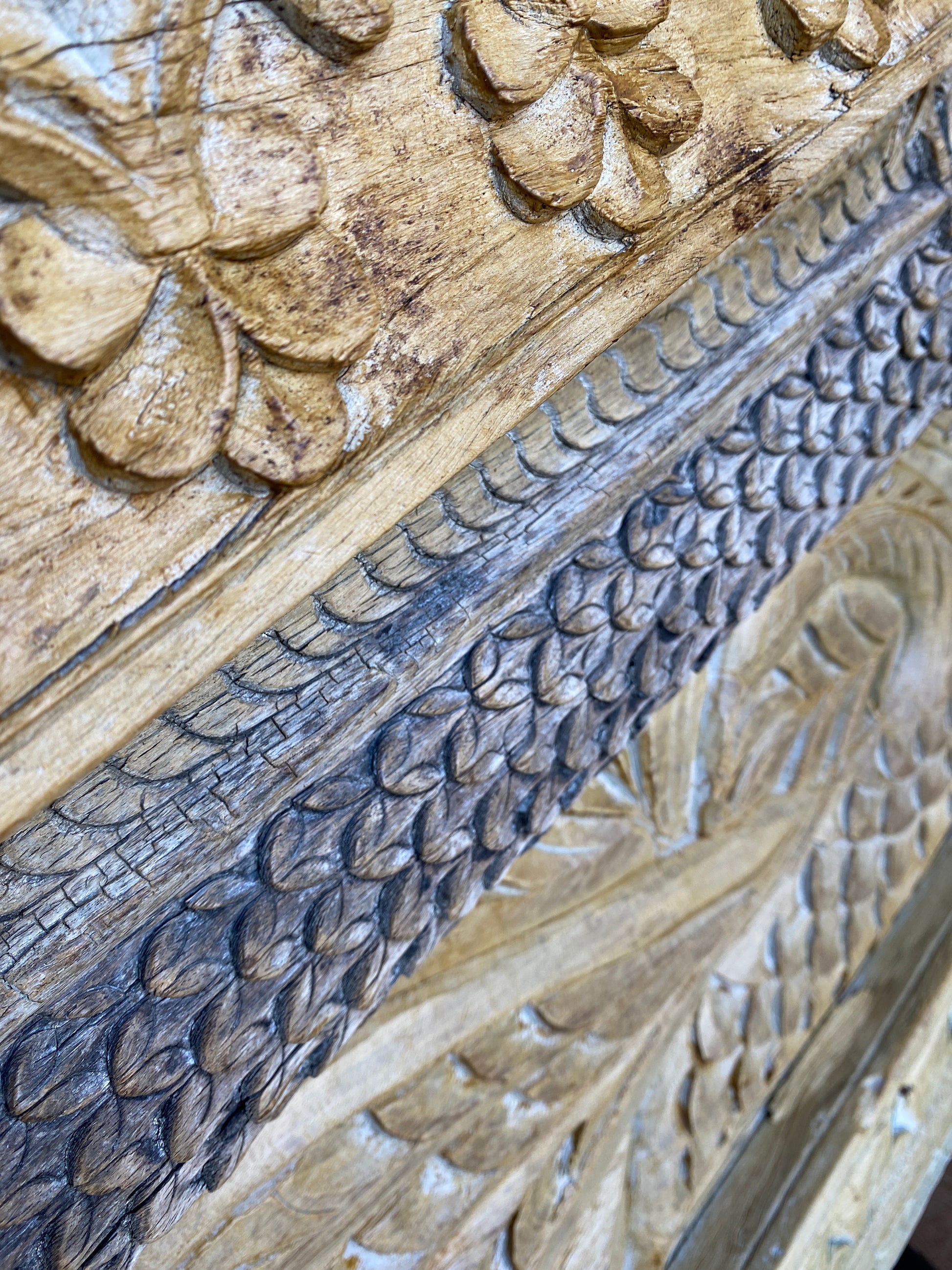 A console made out of a reclaimed ornately carved Indian door. A beautiful piece with all the charm of the old wood that it is made from. The last owner of this piece made regular trips to Bali and India to collect treasures.