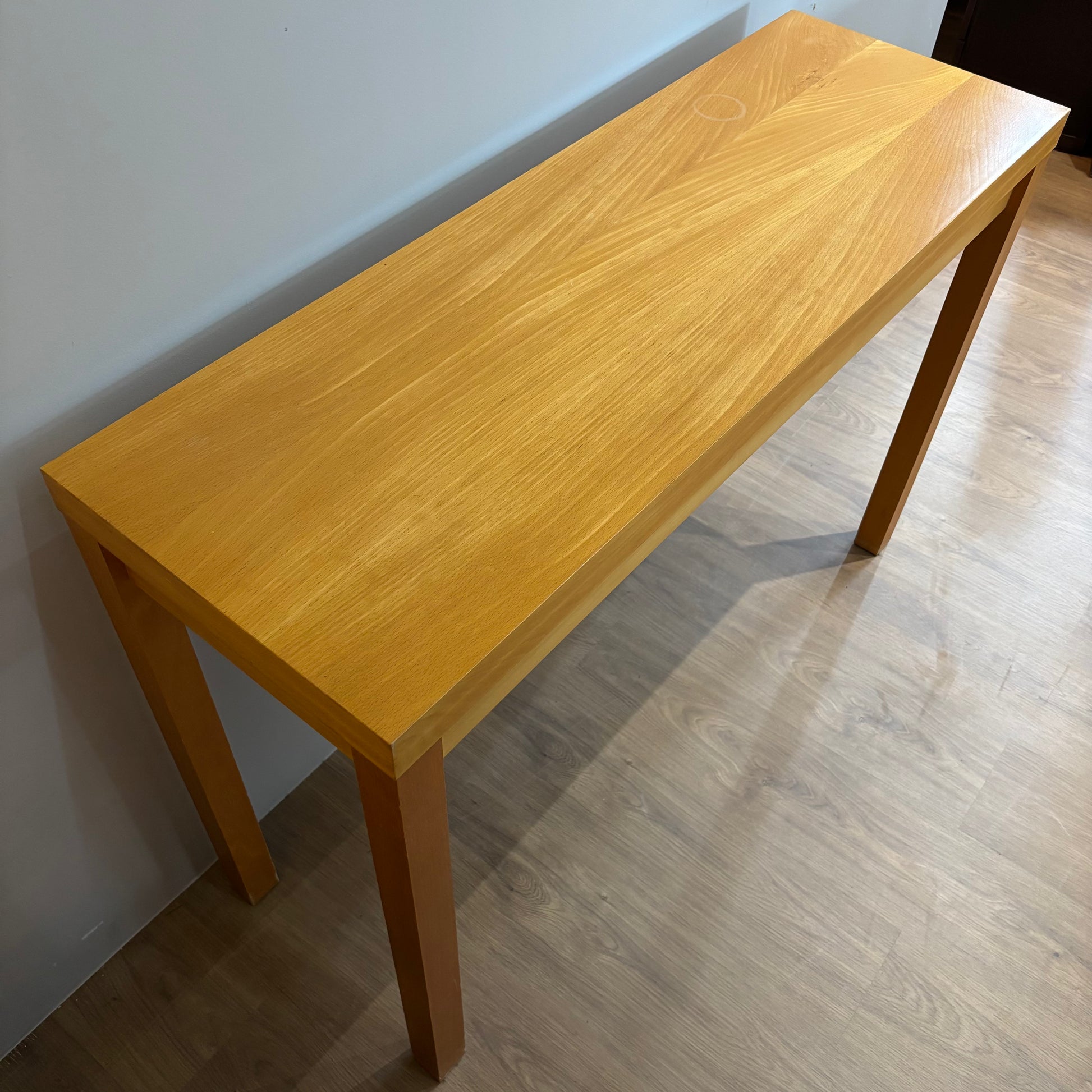 Simple, well-made wooden console table with a warm natural finish. Ideal for entryways, hallways, or behind a sofa. Clean lines and sturdy construction.