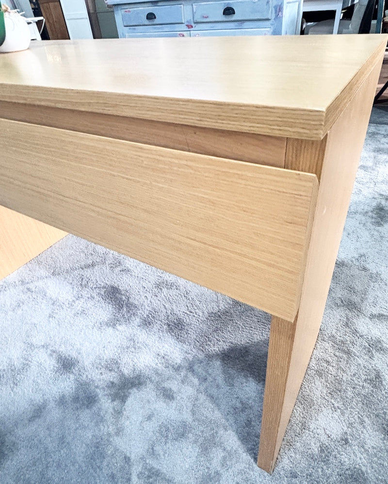 A veneer console with a single large drawer. It is versatile enough to double as a dressing table or a small desk.