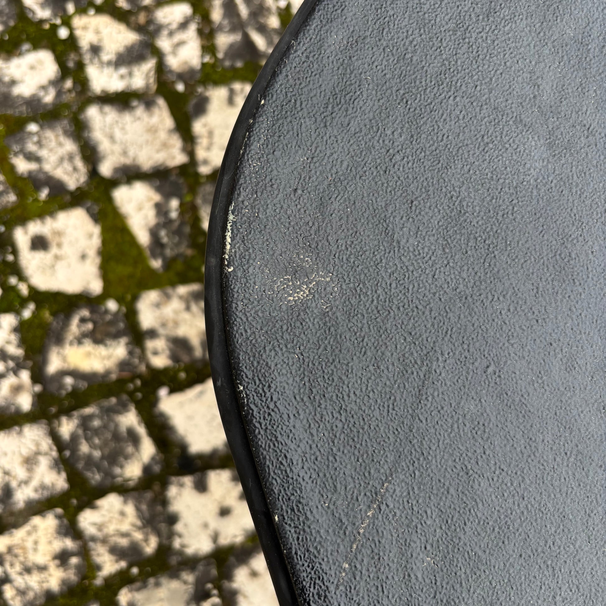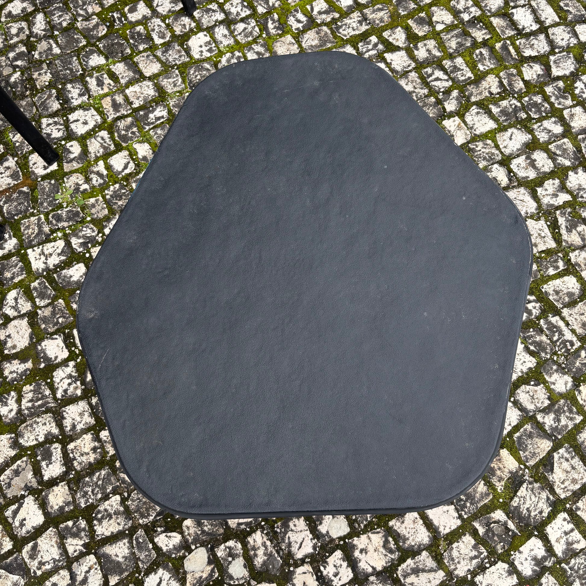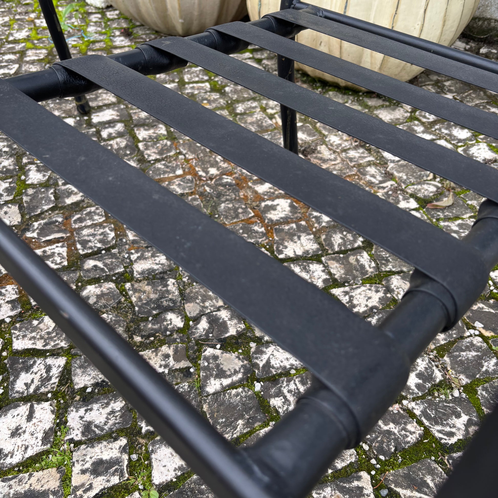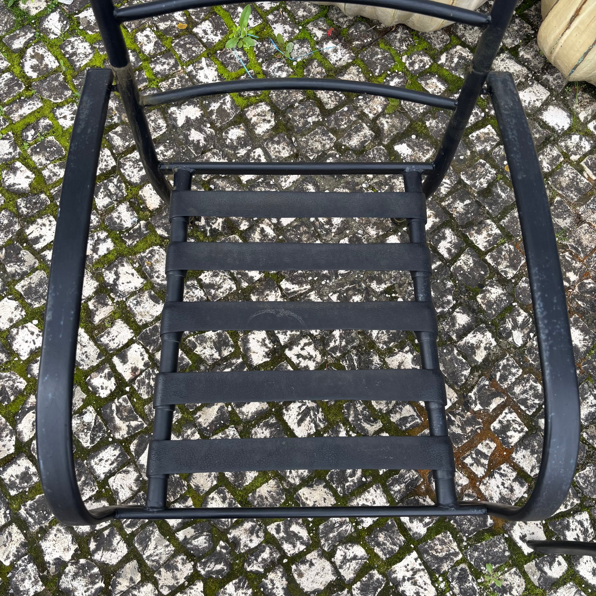 A sleek and minimalist outdoor set featuring black metal chairs with a leather feel fabric, paired with a matching coffee table. With clean lines and a lightweight yet sturdy frame, this set is perfect for balconies, terraces or café-style spaces, adding a modern industrial touch to any outdoor setting.