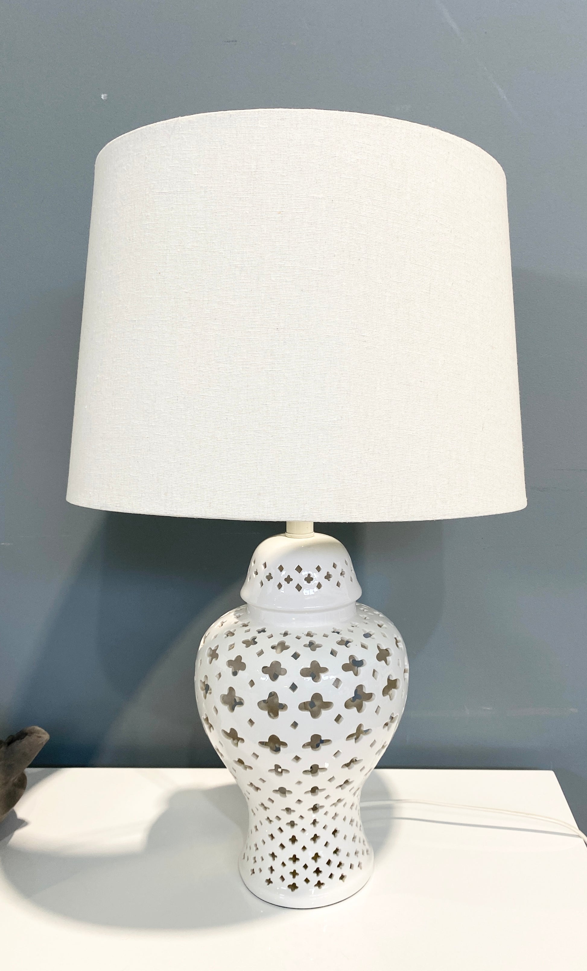 Brighten up any room with this charming white glazed ceramic lamp. Its smooth, glossy finish adds a touch of elegance while creating a soft glow that is delightful.