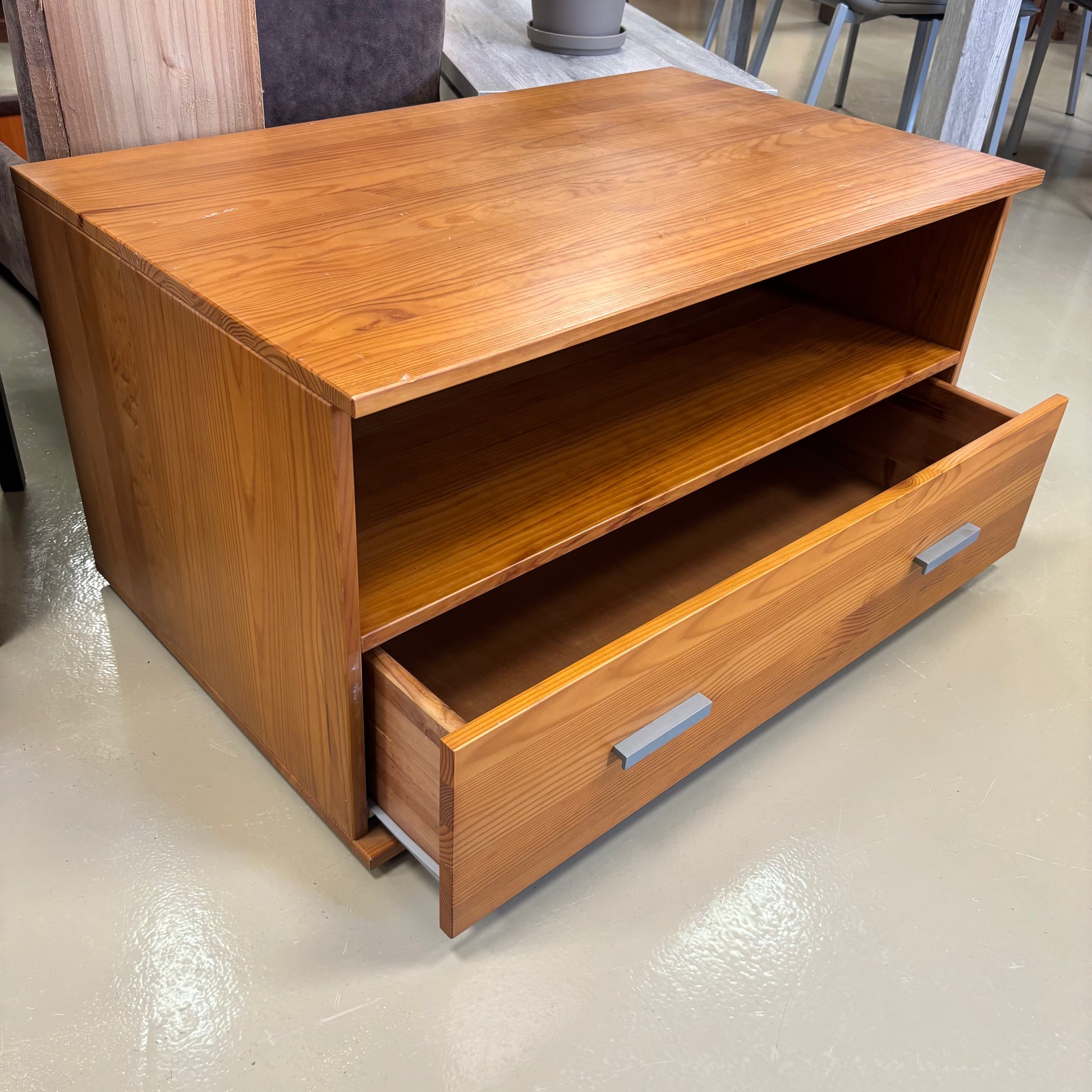 Neat wooden TV stand with one open shelf and one drawer. Clean lines, practical size, and very solid.