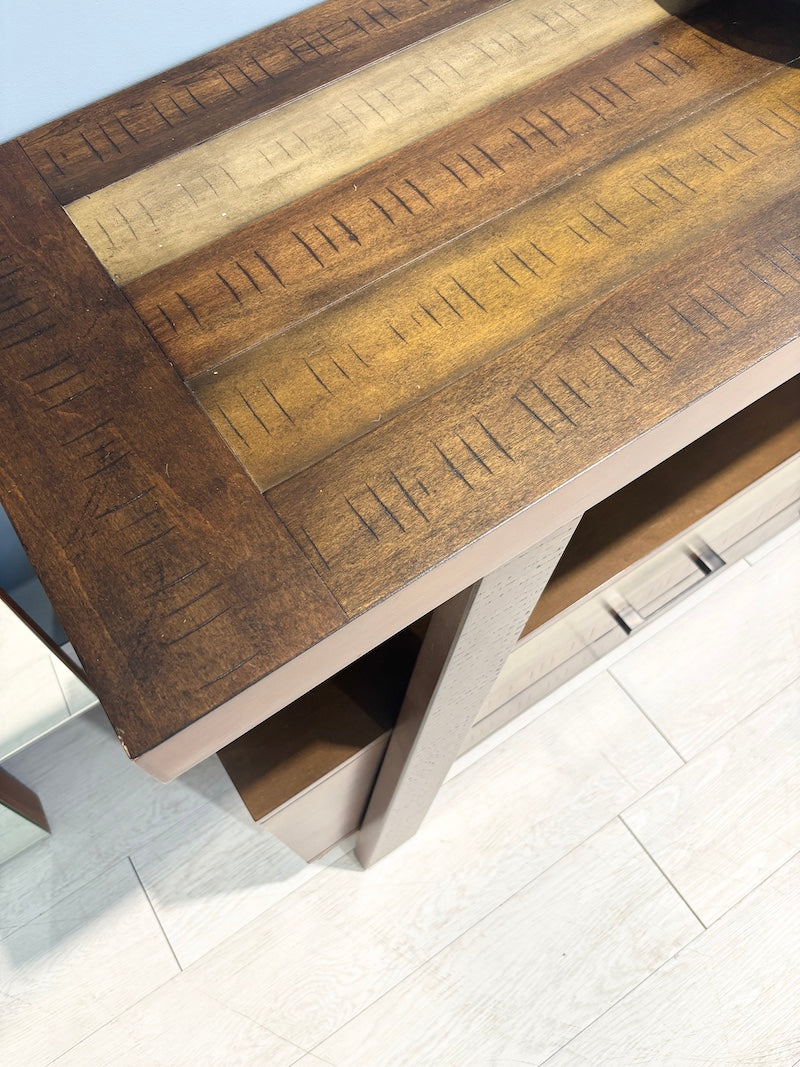 This sturdy wooden wonder works triple duty—display your telly, stash your stuff, or style your entryway. Two generous drawers tuck away the clutter while the open shelf keeps your favorite pieces on show. Those cheeky angled legs give it character that straight-edged furniture could only dream of.