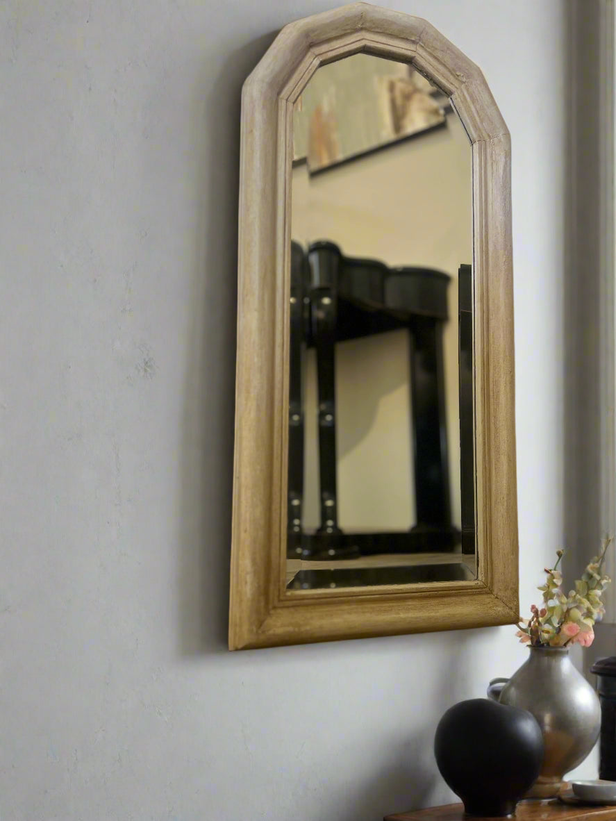 This medium-sized mirror features a honey yellow frame, designed to brighten any room while providing clear, distortion-free reflection. Its balanced dimensions make it ideal for various spaces, from hallways to bedrooms, combining functionality with a cheerful aesthetic that enhances your interior decor with expert precision.