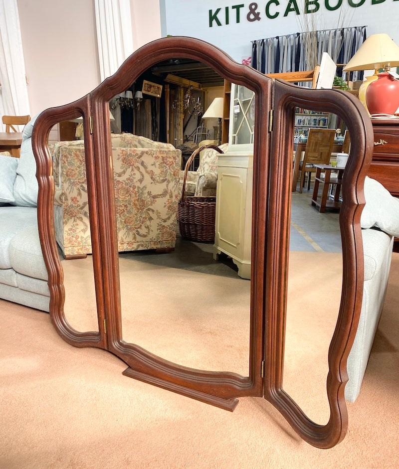 Get a view from all angles as you dress up with this old-fashioned 3-fold wooden framed mirror.