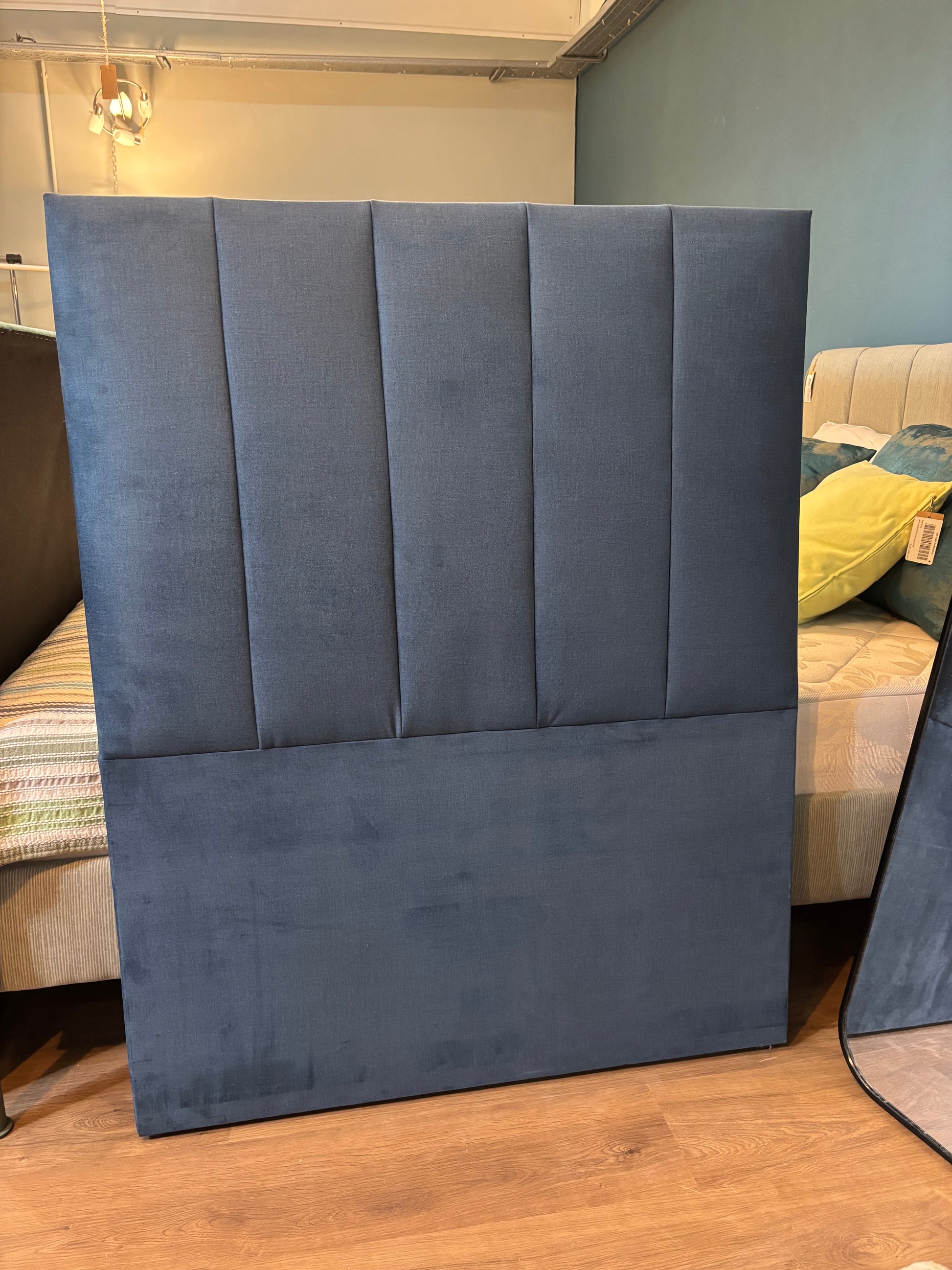 Modern upholstered headboards in a soft blue tone with clean vertical paneling. A simple and sophisticated design that suits both contemporary and classic bedrooms.