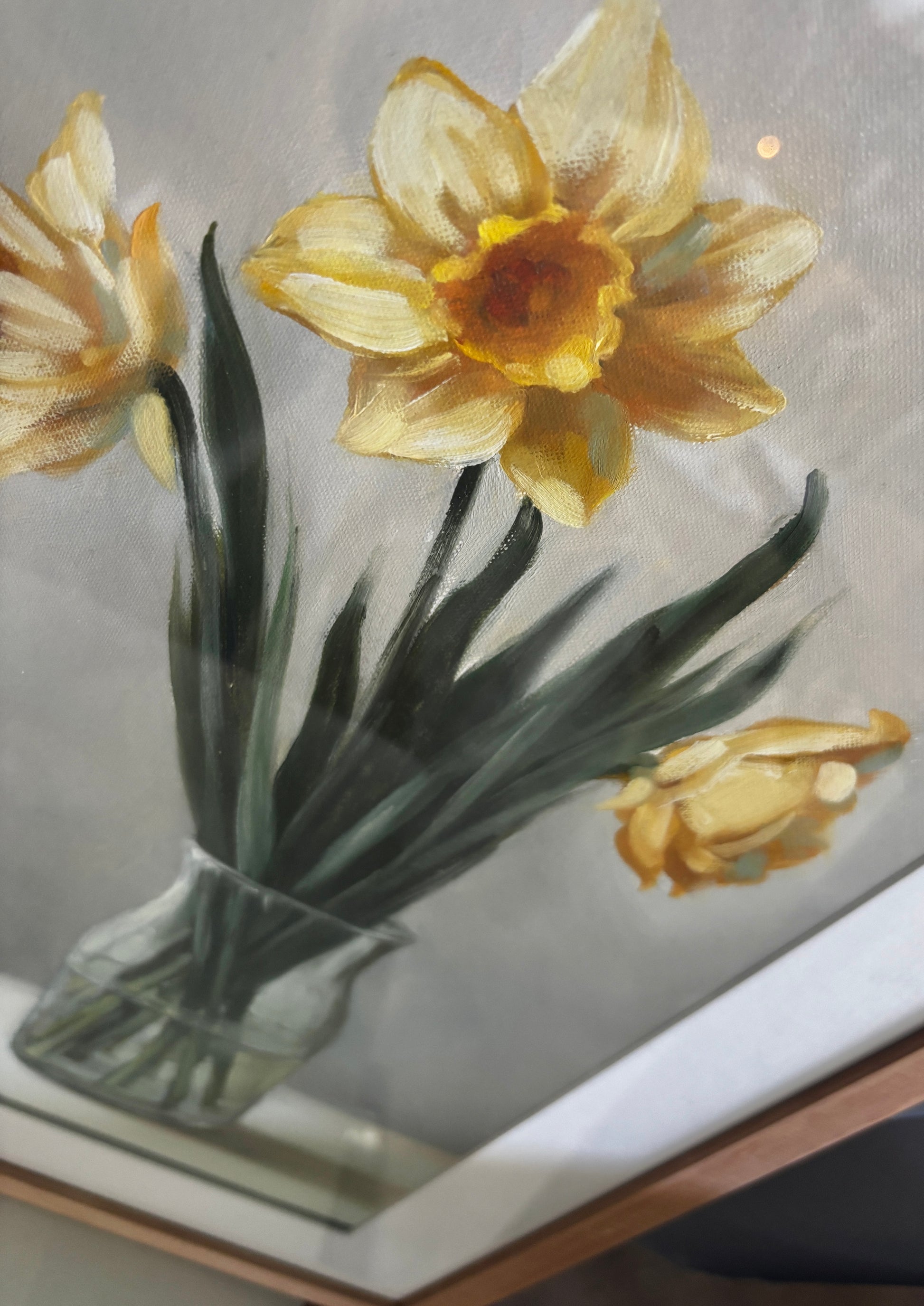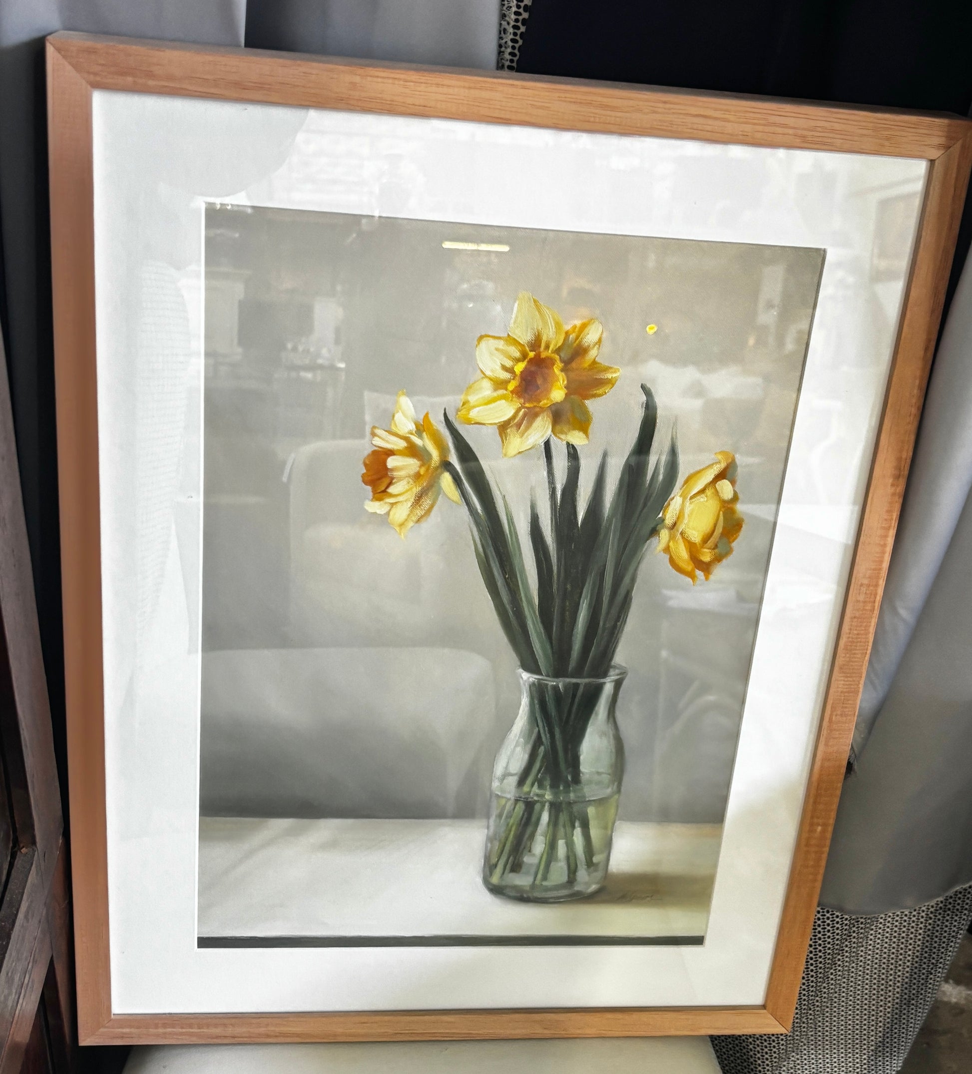 A feeling of peace washes over you when viewing this framed picture. Something about the subtle colors and pretty subject matter is very calming. The pale wood frame contains it perfectly.