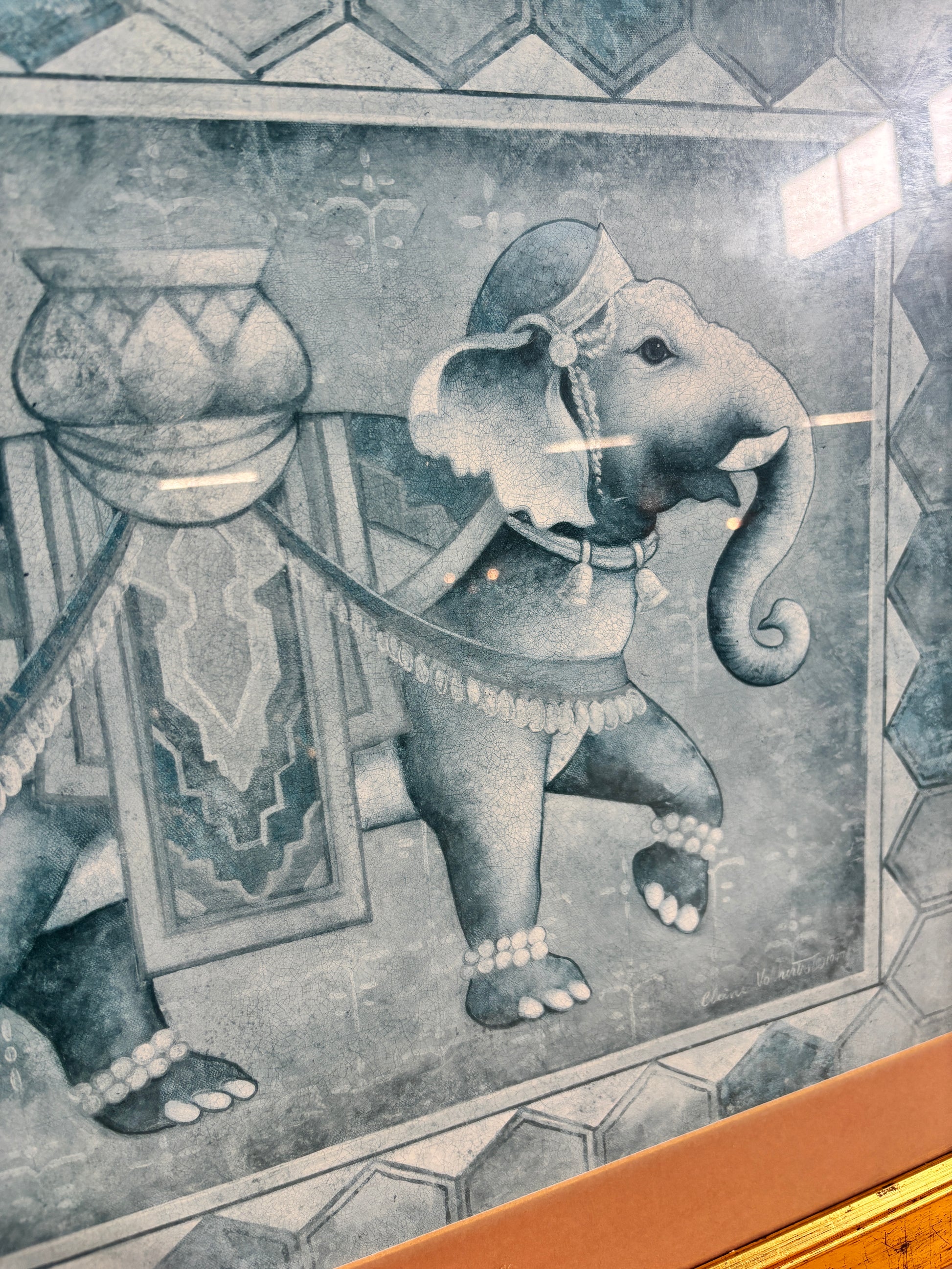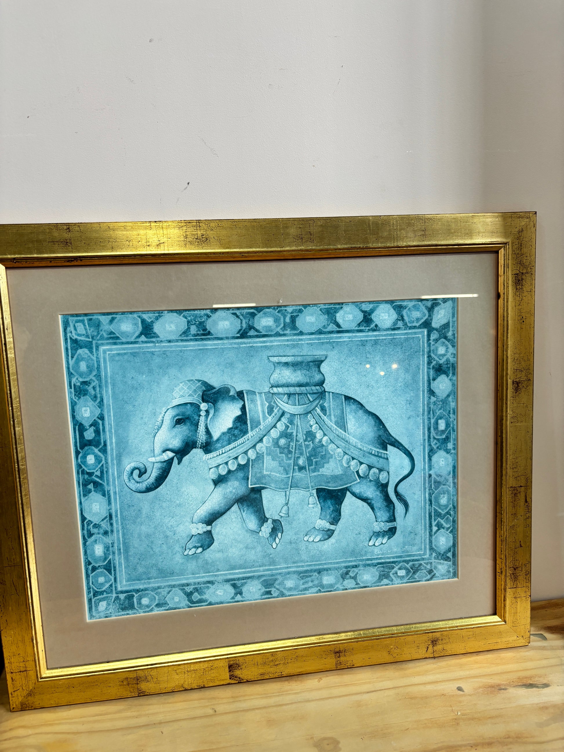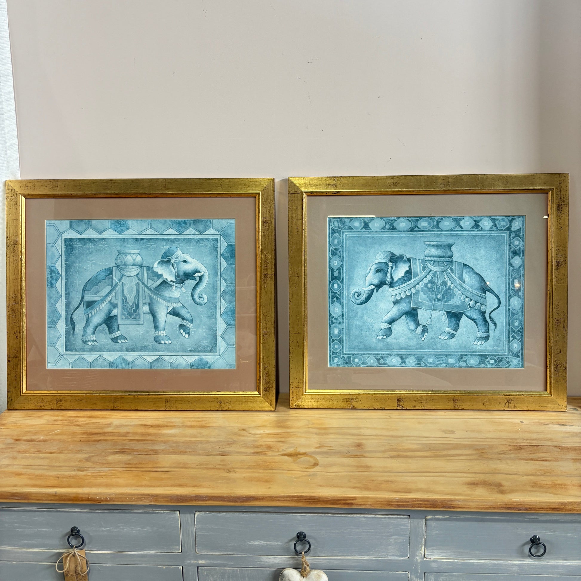 This eye-catching pair of framed blue relief artworks showcase intricate raised detailing set within bold gold frames. The rich contrast between the cool blue tones and warm metallic frame creates a sophisticated, gallery-style look. Perfect for adding texture and classical elegance to a hallway or living space.