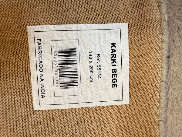A contemporary wool rug featuring a stylish geometric block design in soft neutral tones: cream, taupe, beige and tan.
