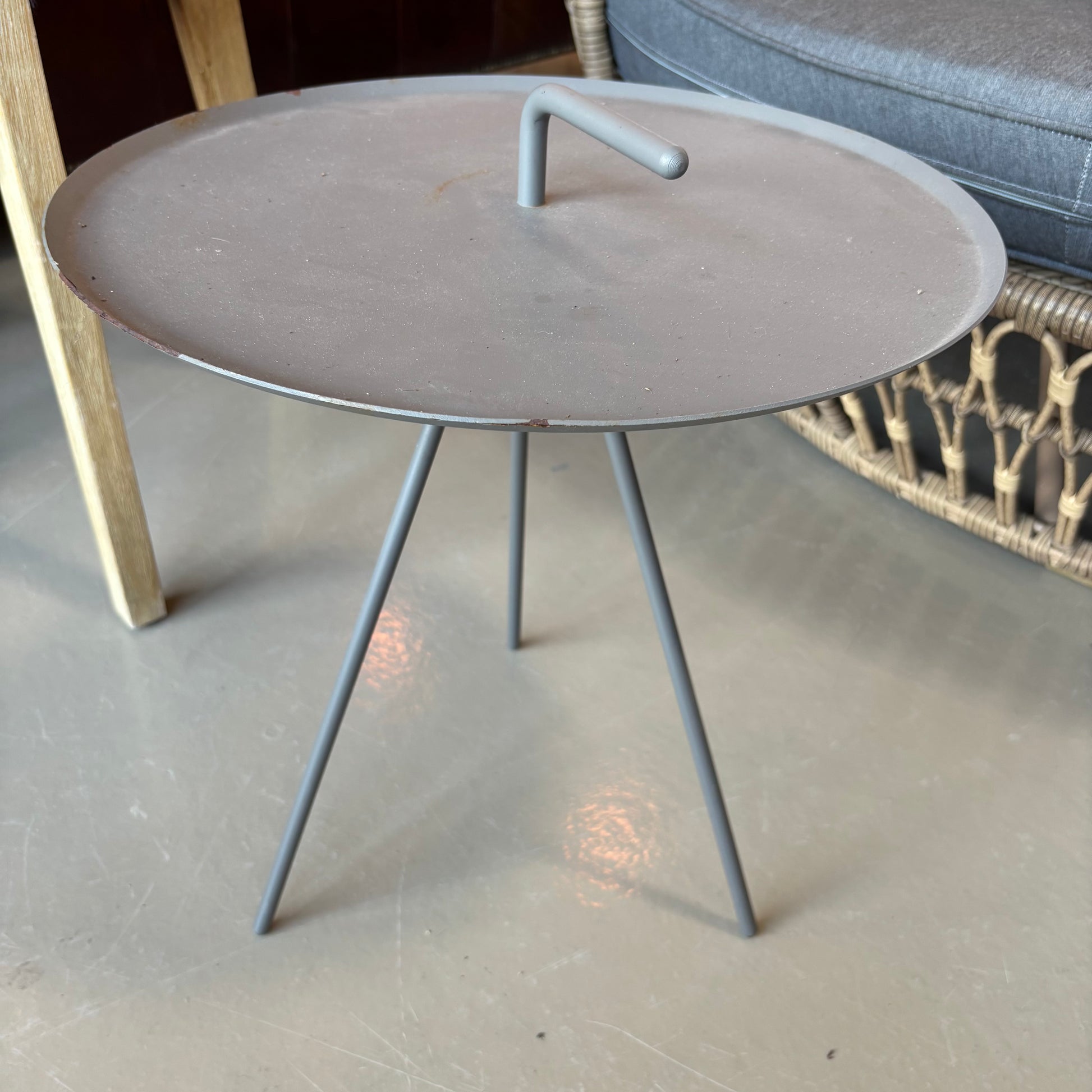 Handy small metal side table with a built-in carrying handle - easy to move around.