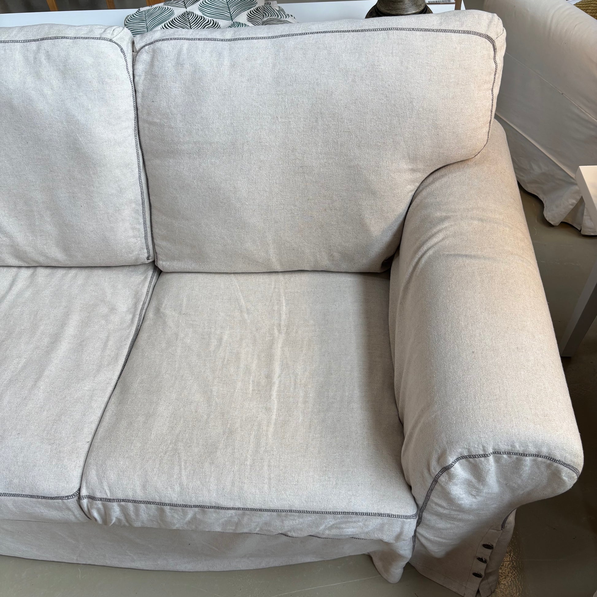Cosy pair of sofas with removable beige covers - great for relaxed family living