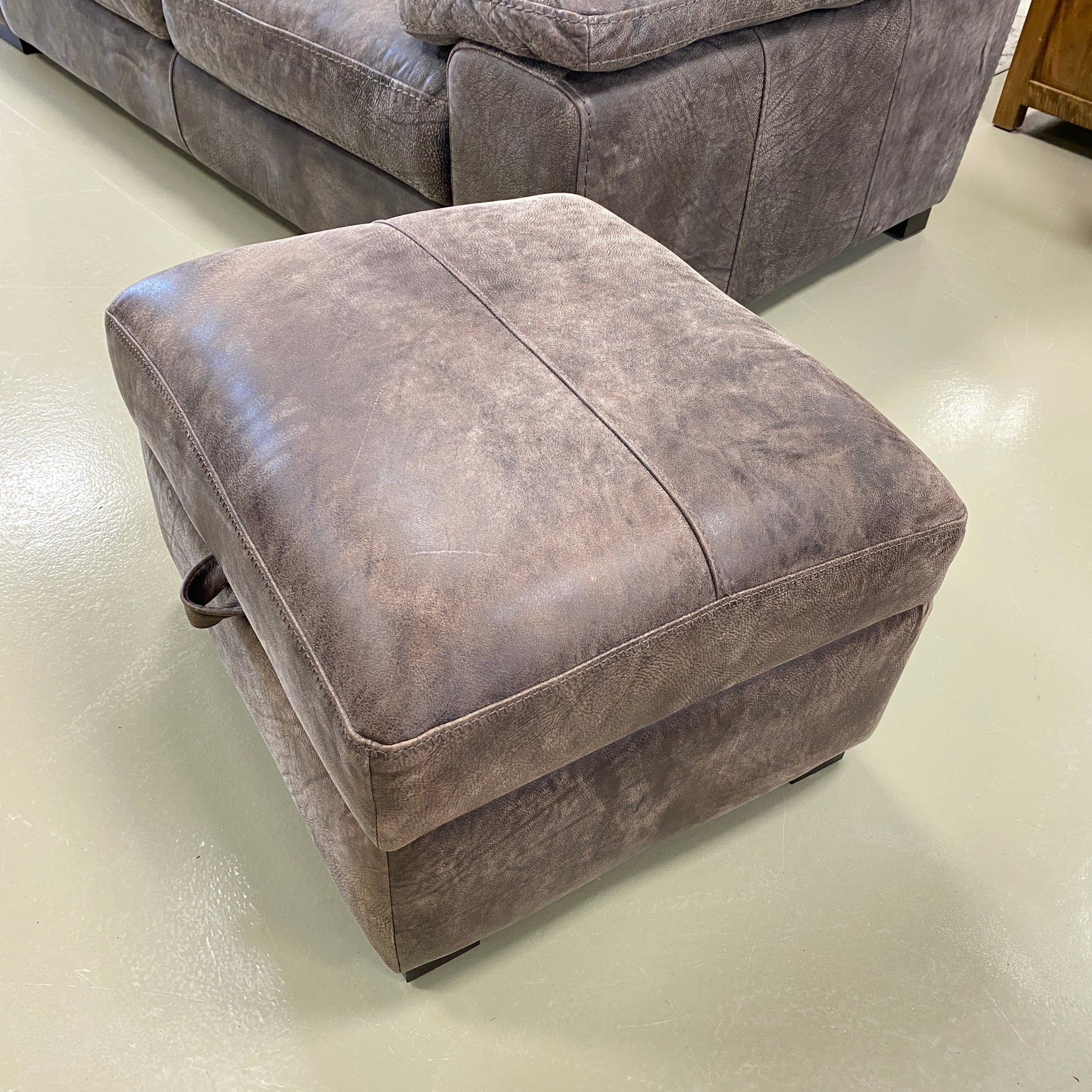 Plush taupe fabric sofa with matching footstool with storage. Deep seats offer maximum comfort - perfect for relaxing in any living room.