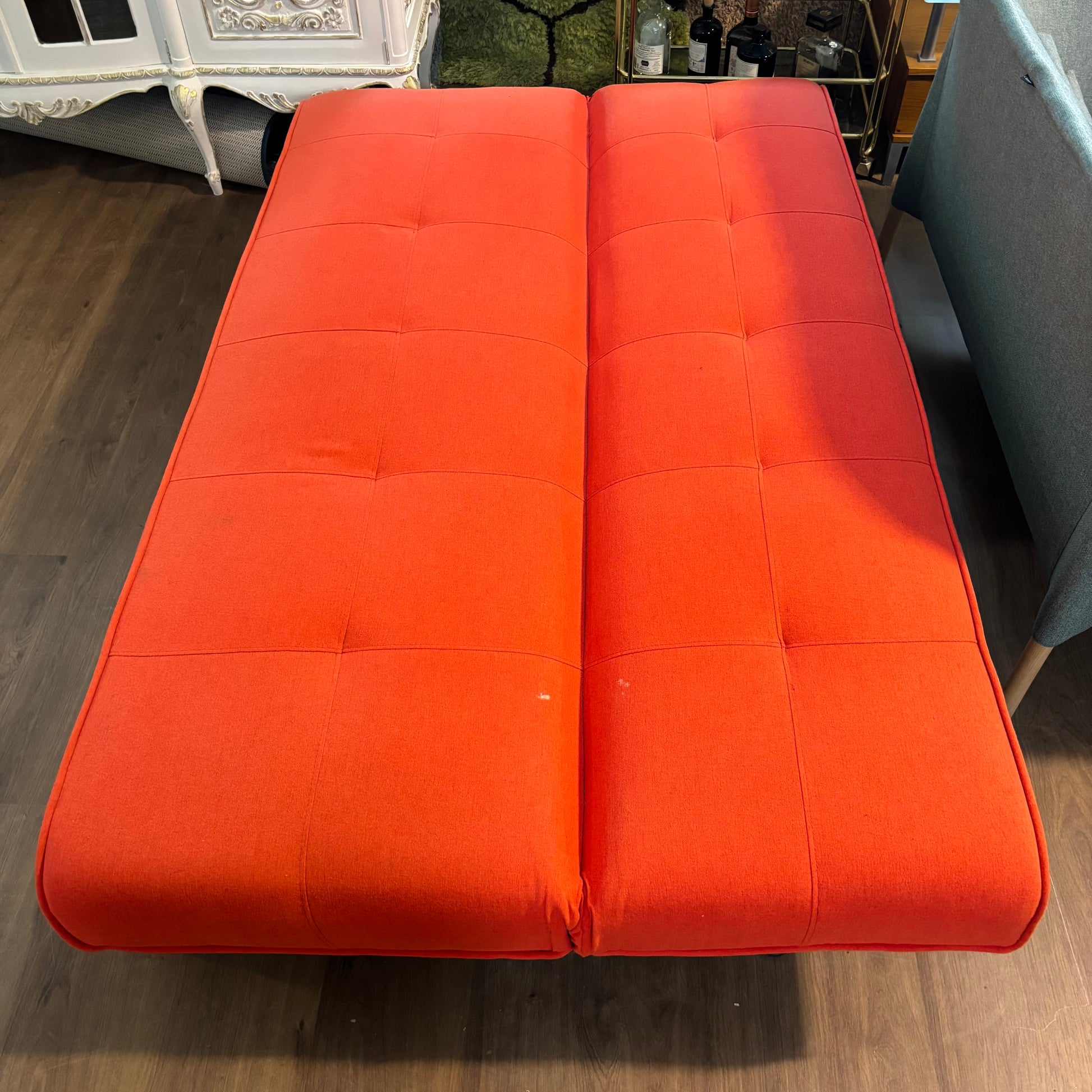 Bold and eye-catching, this orange two-seater click-clack sofa makes a stylish statement. Compact yet comfortable, it’s perfect for adding personality to smaller spaces, and having a handy bed conversion makes it all the better.