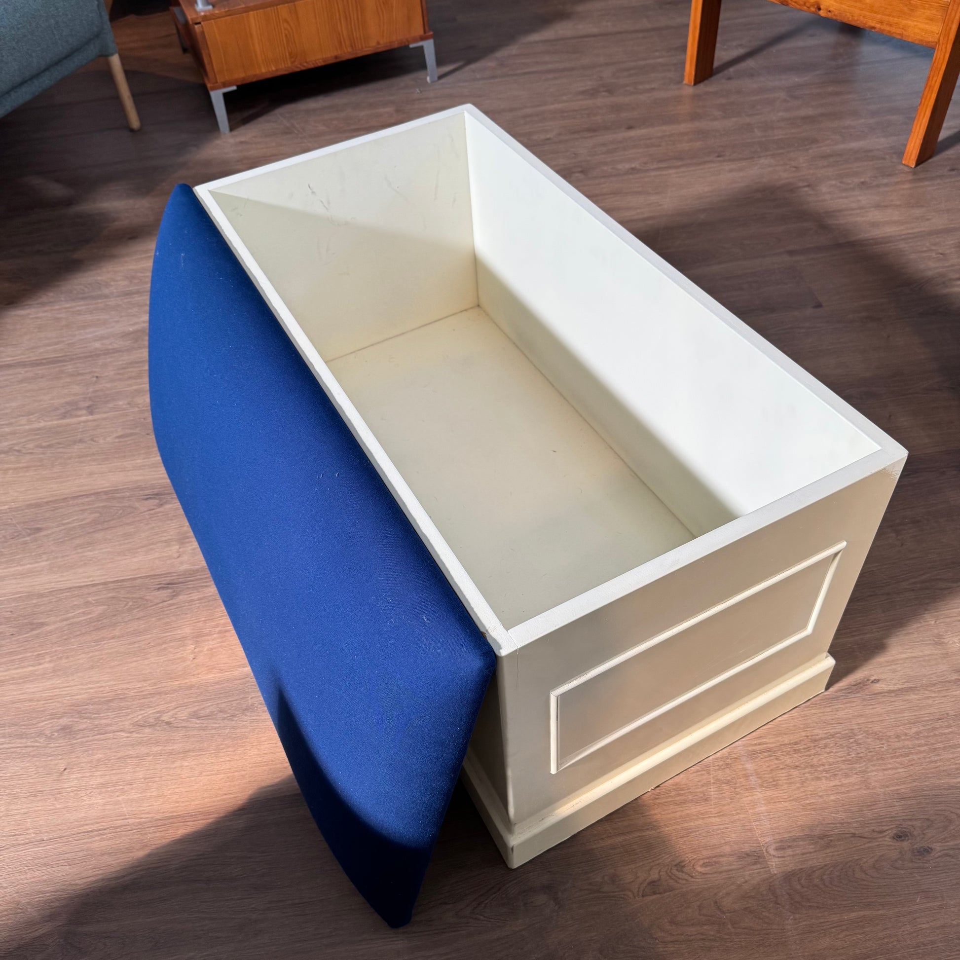 Handy storage bench with a comfy cushioned top. Cream base with a deep compartment inside—great for blankets or shoes.