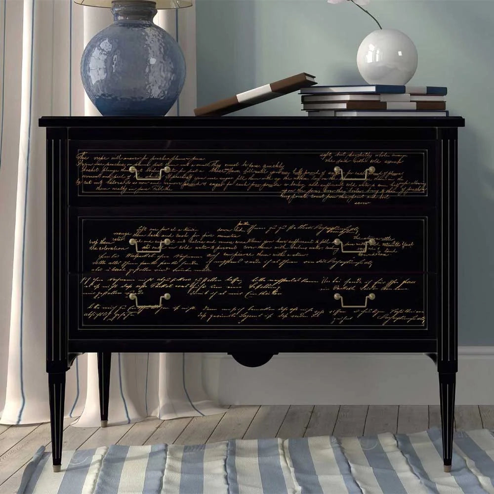 Add a touch of classy script to any piece with the Sweet Notes Decor Transfer®. This new 12” x 12” size allows you to create projects on a medium to smaller scale. Our transfer is so easy to use: simply peel off the protective backing, apply transfer to prepared surface, rub on the design with included stick (or use our Transfer Tool), peel off the top sheet (check to make sure the whole design transferred), and burnish to remove any existing halos. Look for the BEST selection of Décor Transfers in the world, only from Redesign with Prima®!