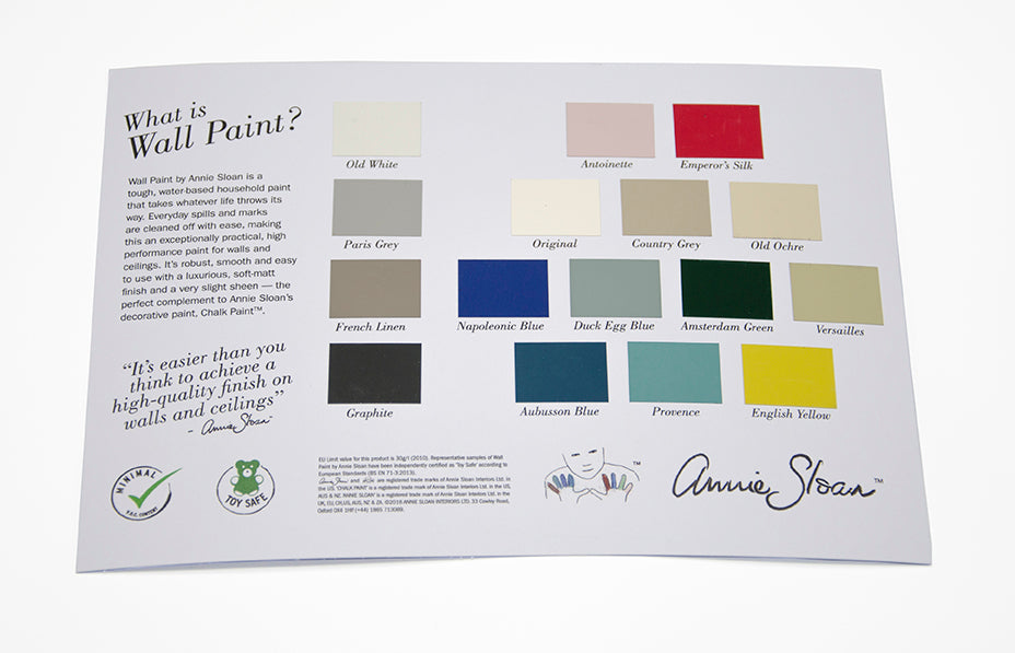 The Annie Sloan Wall Paint & Satin Paint Card shows you all 32 carefully curated colours available as part of Annie’s new Wall Paint and Satin Paint ranges. This palette has been designed to give you the confidence to build a room – and a home – that’s as unique as you are.