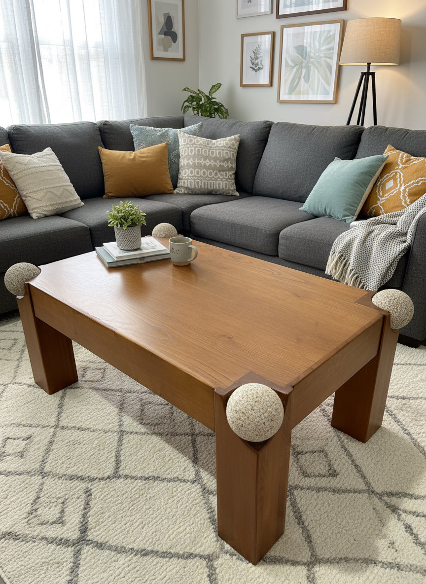 This exquisitely crafted wooden table features elegant marble balls positioned at each corner, merging natural warmth with refined sophistication. The sturdy wooden surface provides durable functionality, while the marble accents add a touch of luxury, creating a balanced design ideal for both classic and contemporary interiors.