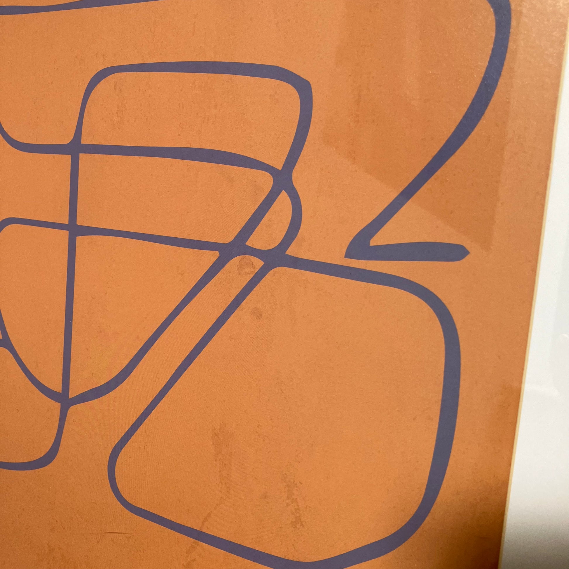 Um desenho minimalista com um fundo em tom pêssego quente. Limpo e moderno, esta obra de arte combina bem com espaços calmos e de tons neutros ou ambientes de escritório.