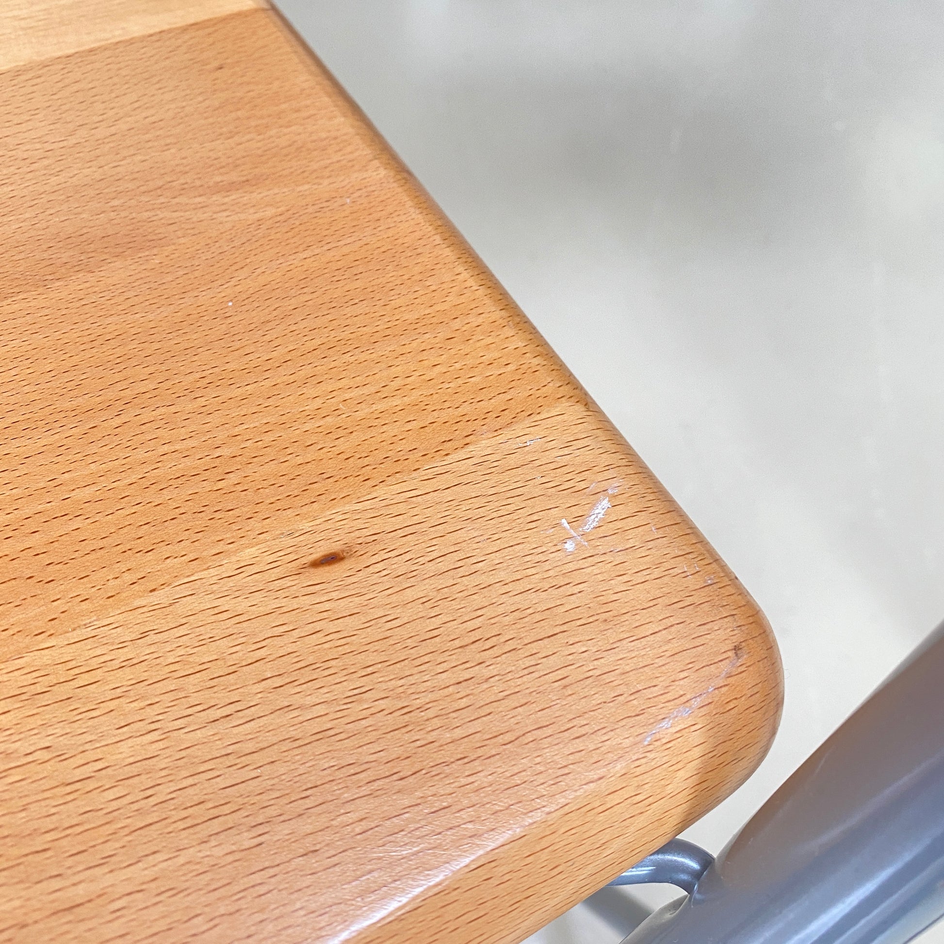 Two modern bar stools with a metal frame and wooden seat - sturdy, sleek, and ideal for kitchens or breakfast bars.