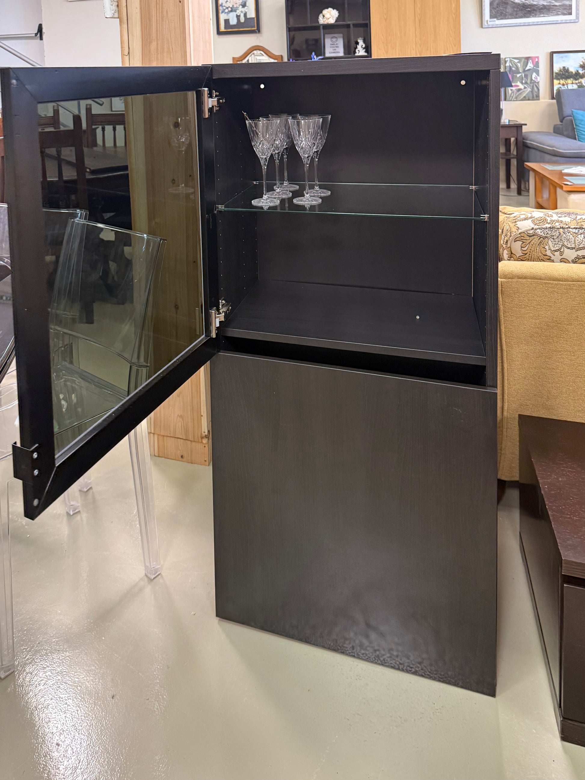 Este elegante armário preto possui prateleiras de vidro transparente e uma porta de vidro, tornando-o a peça perfeita para exibir seus copos ou garrafas favoritos. Compacto e elegante, é perfeito para salas de estar, salas de jantar ou bares modernos.