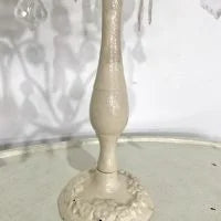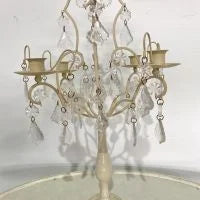 Um candelabro creme com 4 arandelas e gotas de vidro.