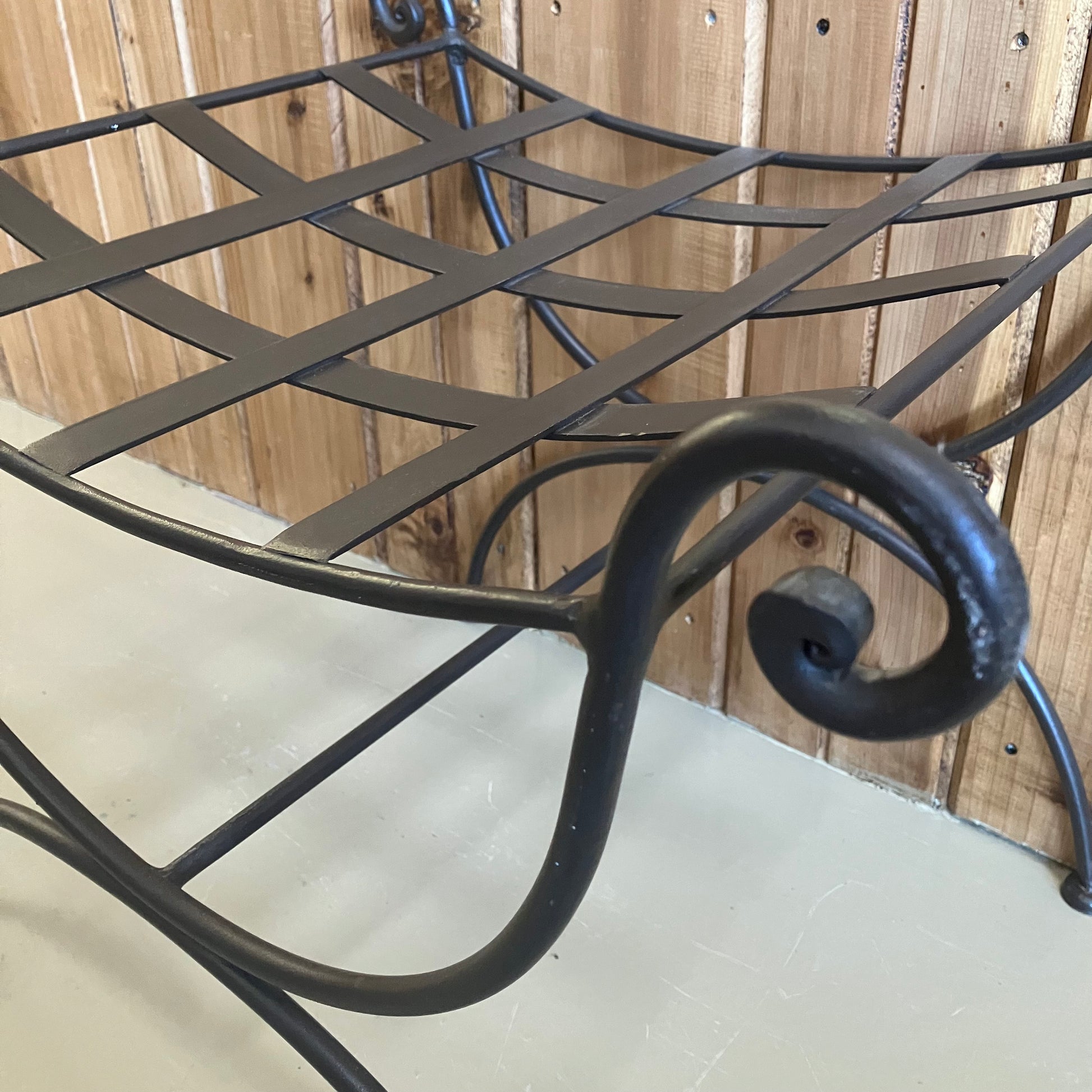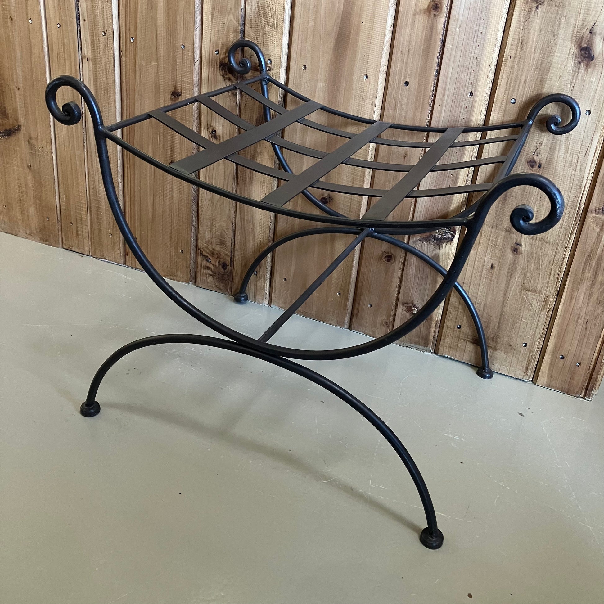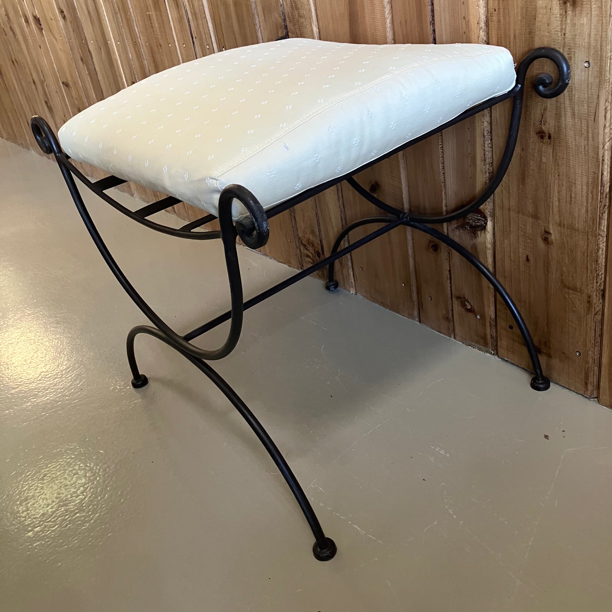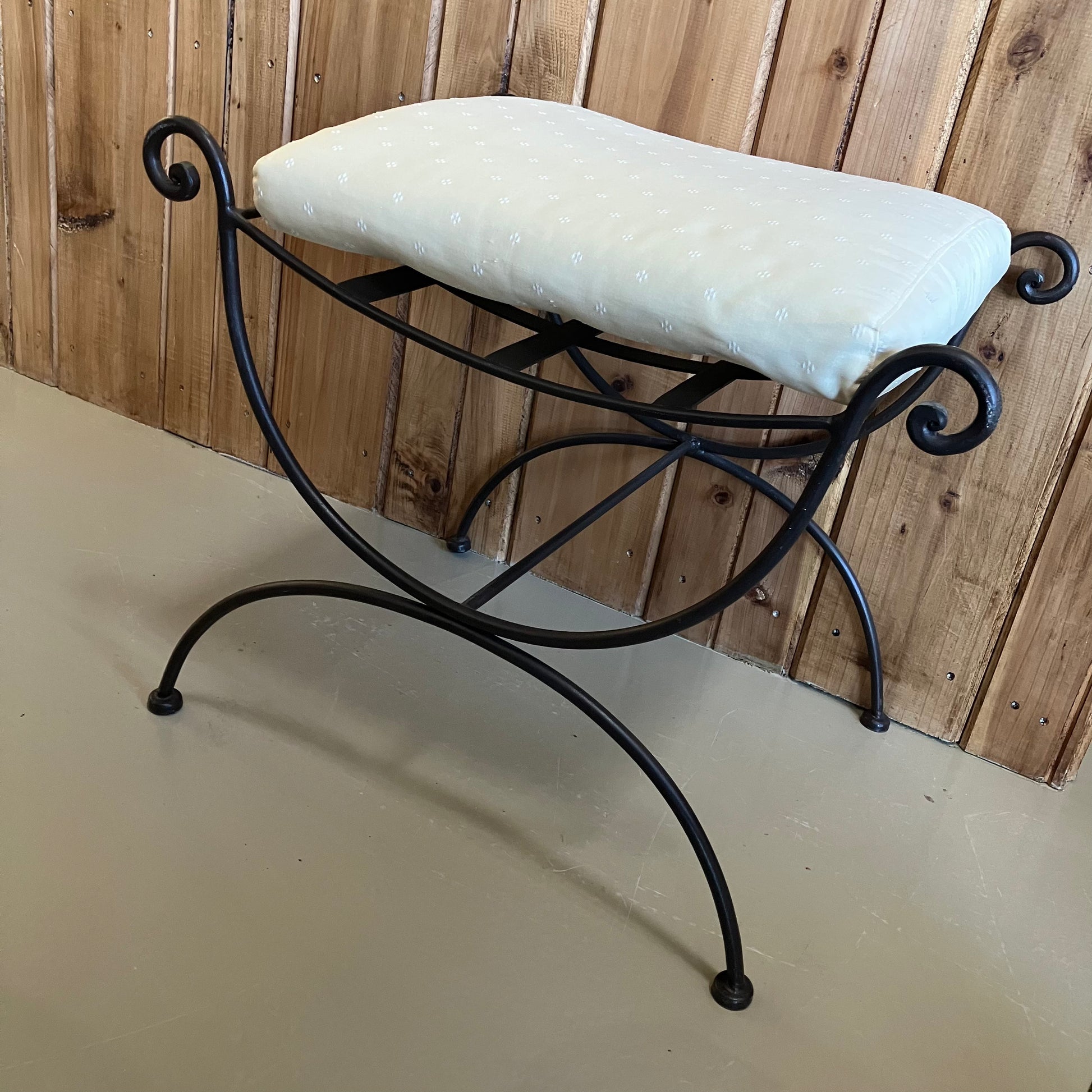 Um pequeno e elegante banco de metal com uma alegre almofada amarela no topo. Compacto e prático, acrescenta um toque de cor e conforto a qualquer corredor, quarto ou closet.