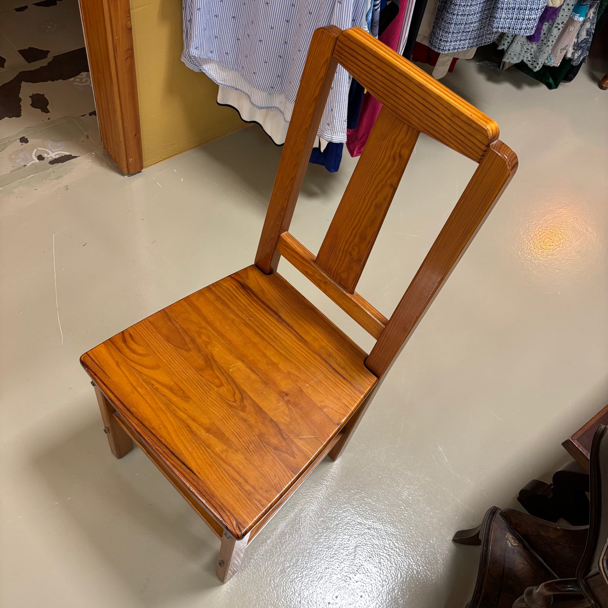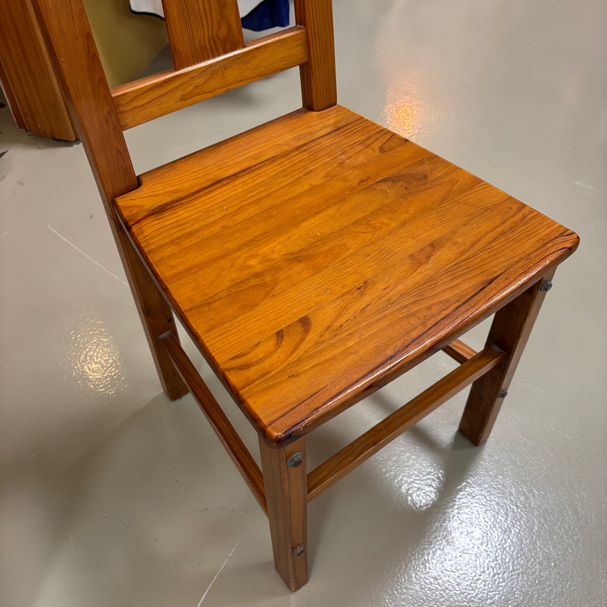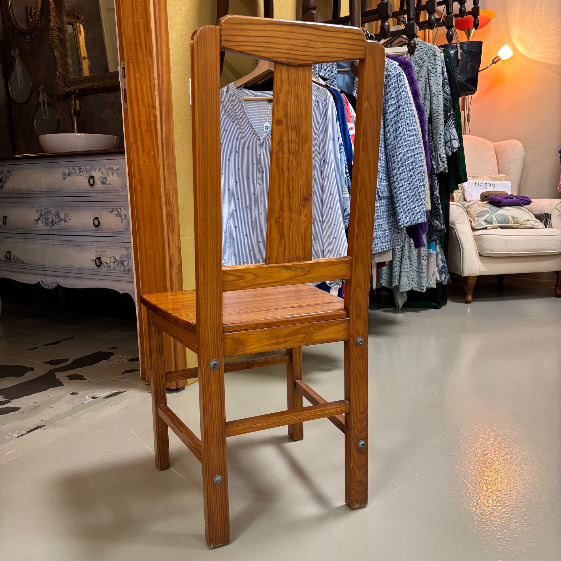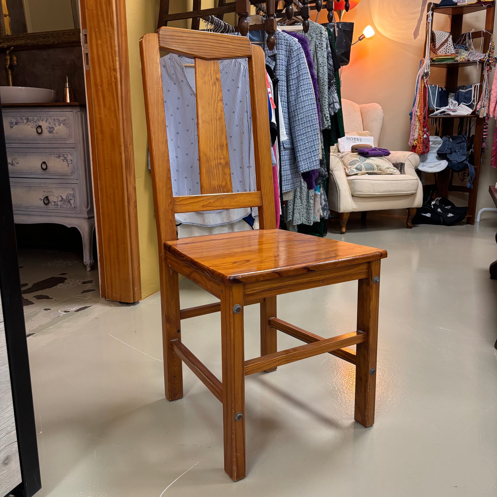 Cadeira simples de madeira com encosto curvo. Ótima como cadeira de jantar ou assento extra.