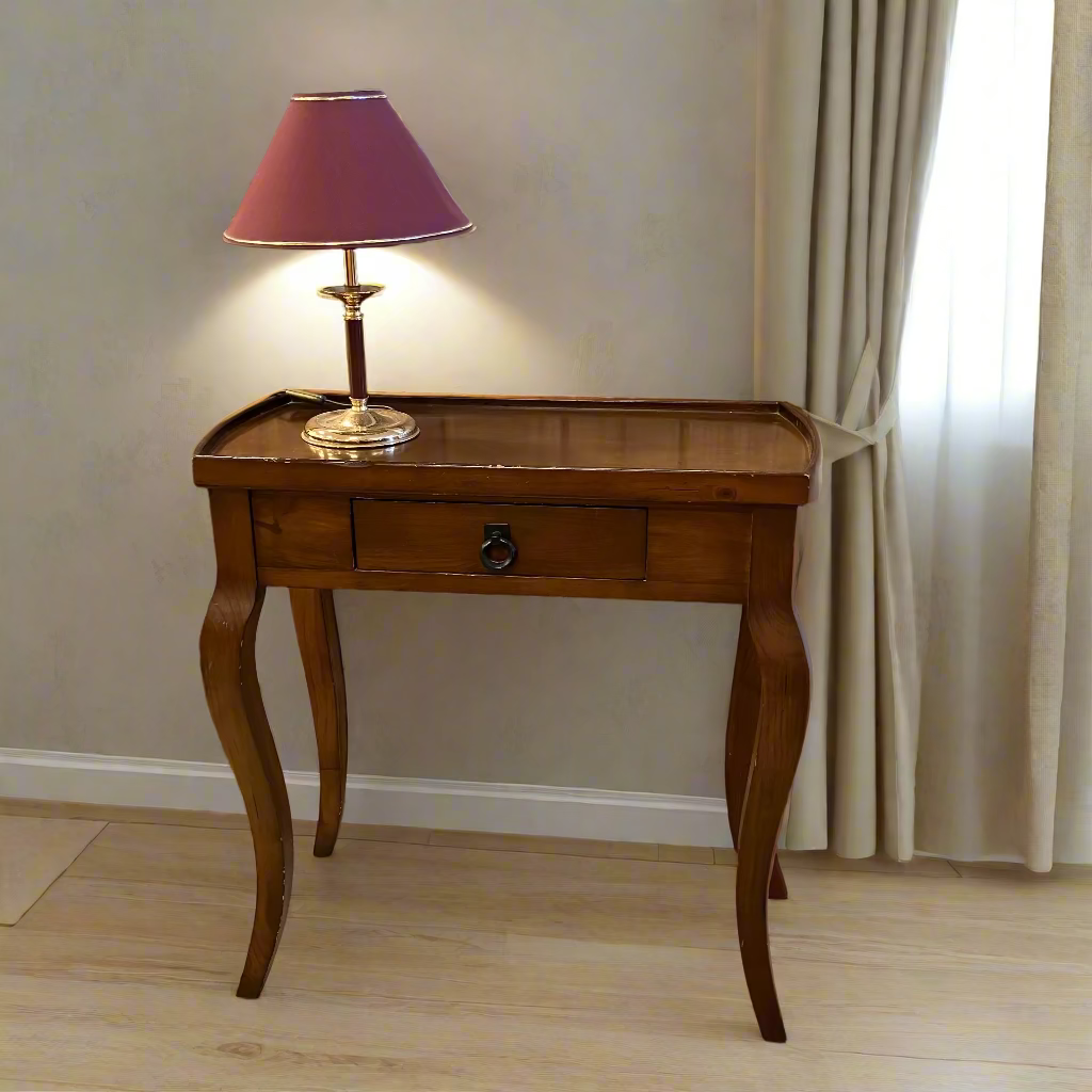 Elegant and slim with curving legs and a small drawer - perfect for hallways, entry spaces or small rooms in need of a surface.