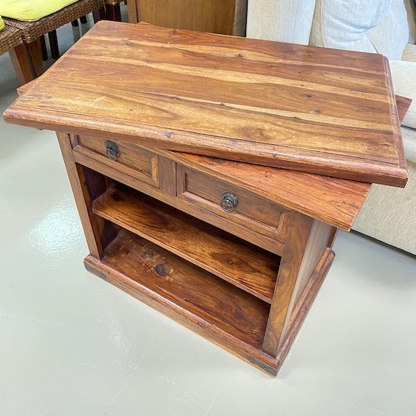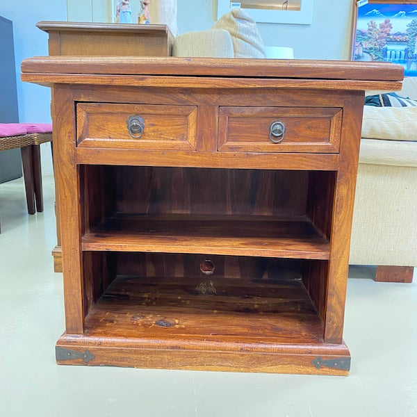 Fabricado em madeira maciça com veios ricos e naturais, este móvel clássico pode ser utilizado como armário, mesa de apoio ou até como móvel multimédia. Possui duas gavetas com elegantes puxadores de argola e duas prateleiras abertas por baixo, proporcionando um espaço generoso para livros, cestos ou artigos de exposição. A base ligeiramente curva e os detalhes esculpidos nas bordas acrescentam personalidade, tornando-a uma peça versátil para o hall de entrada, sala de estar ou corredor.
