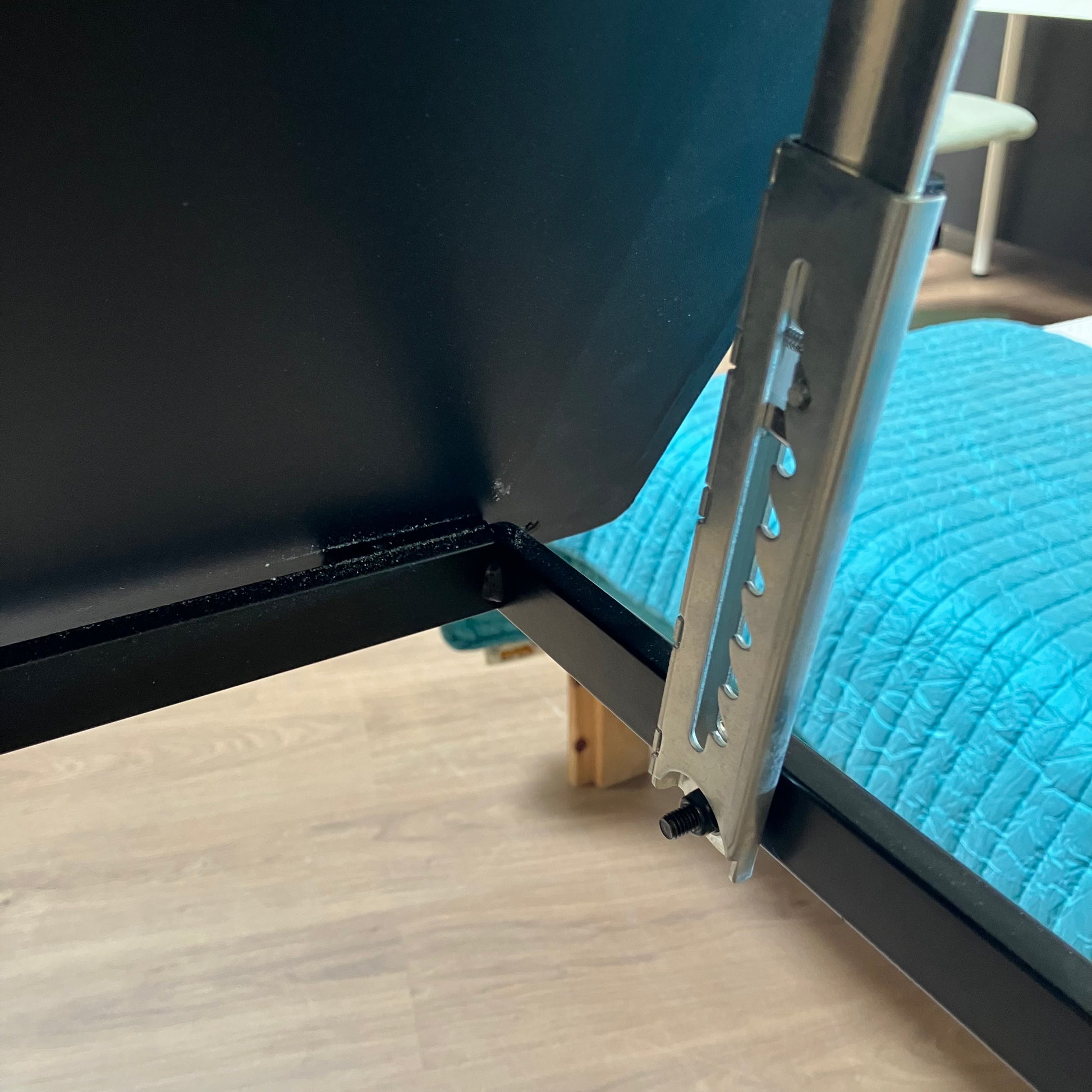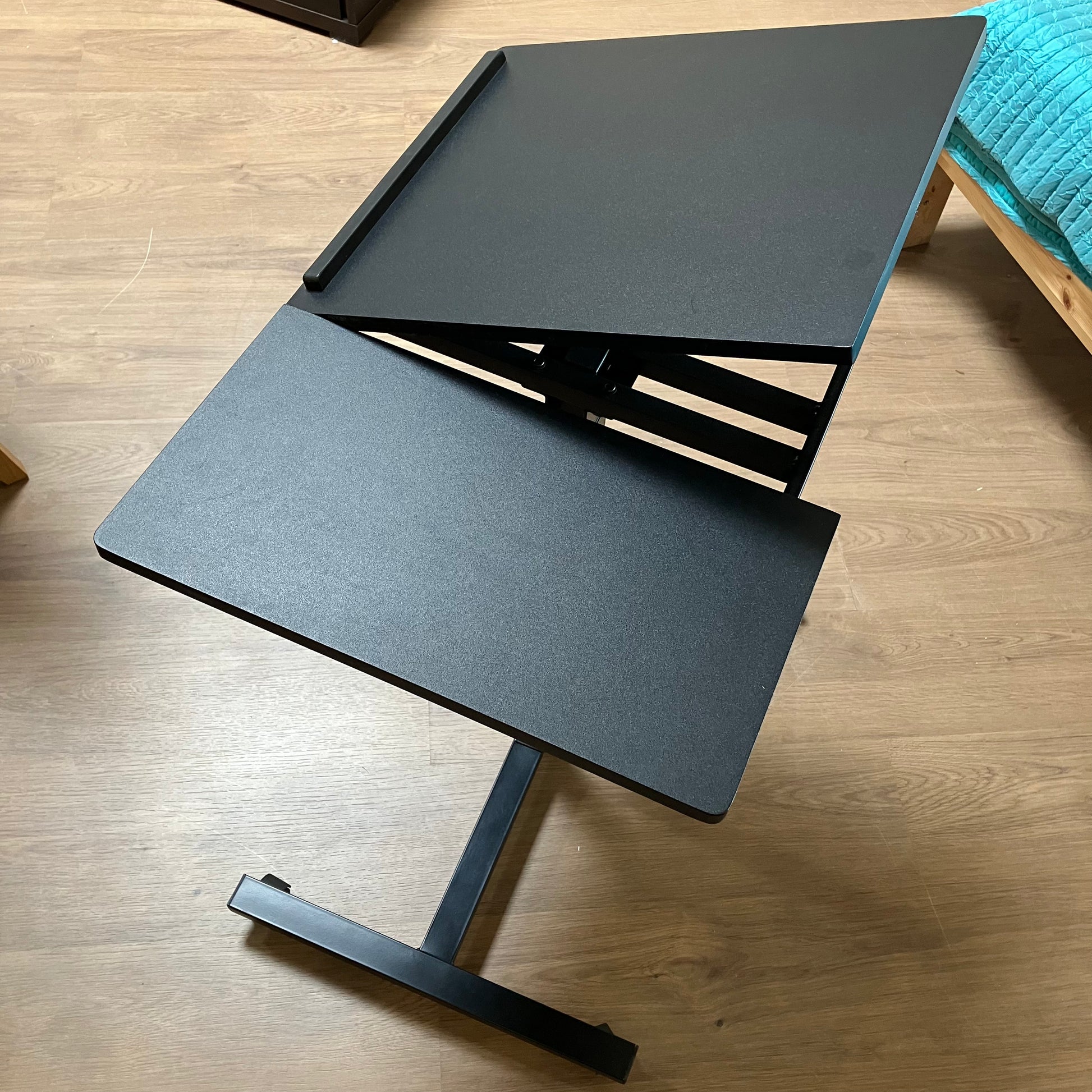 Compact and versatile, this black metal table features an adjustable top for reading, writing, or laptop use. Perfect for home offices or next to the sofa.