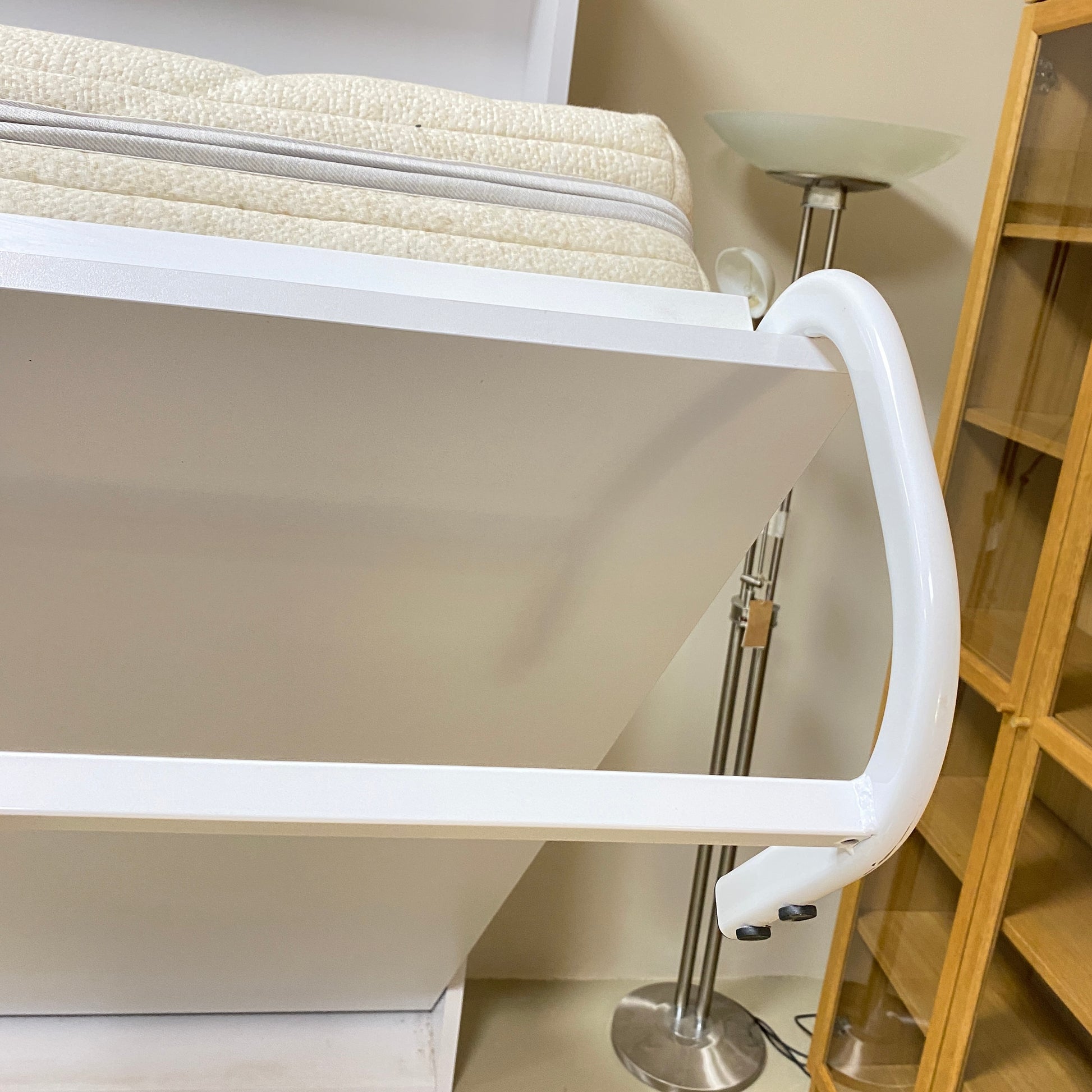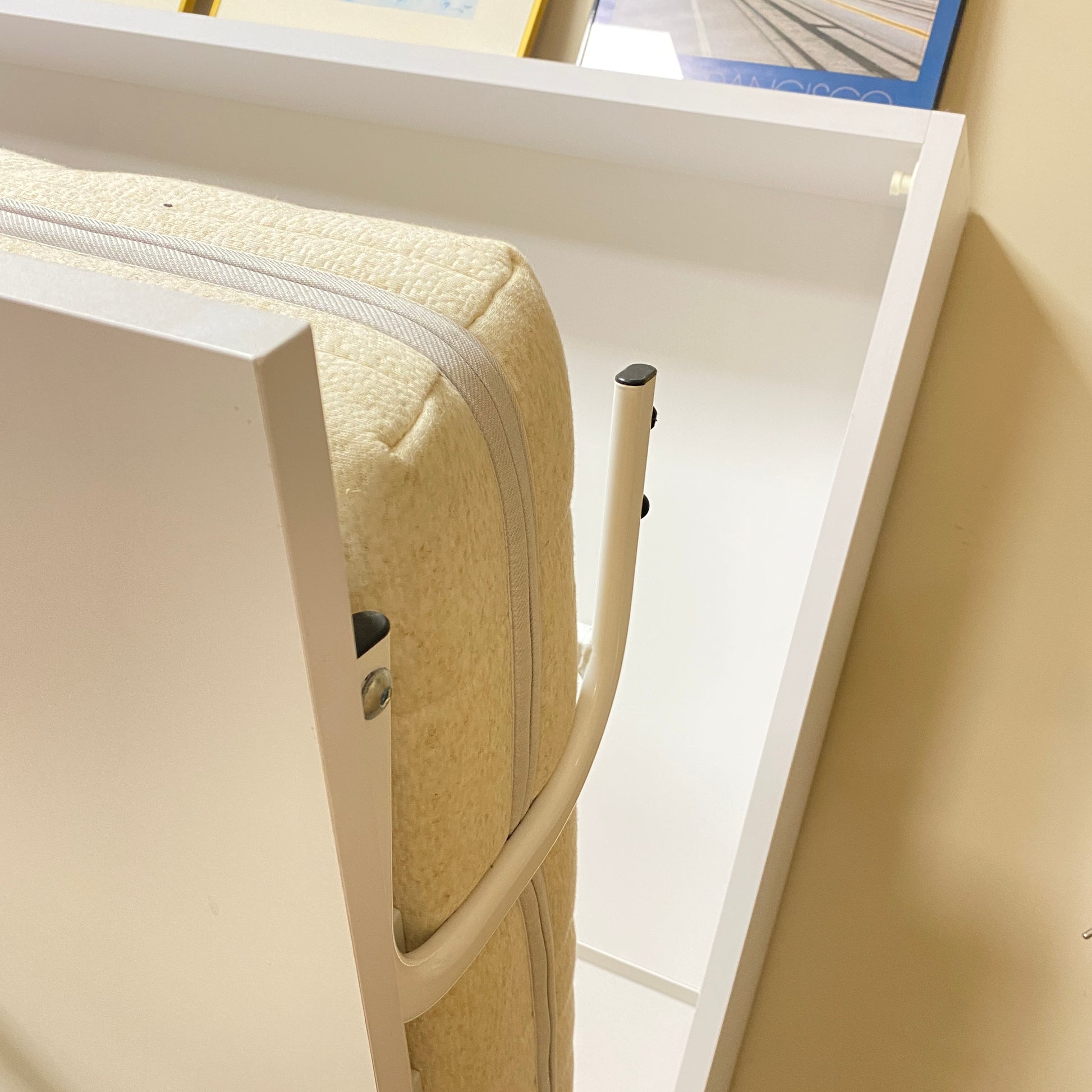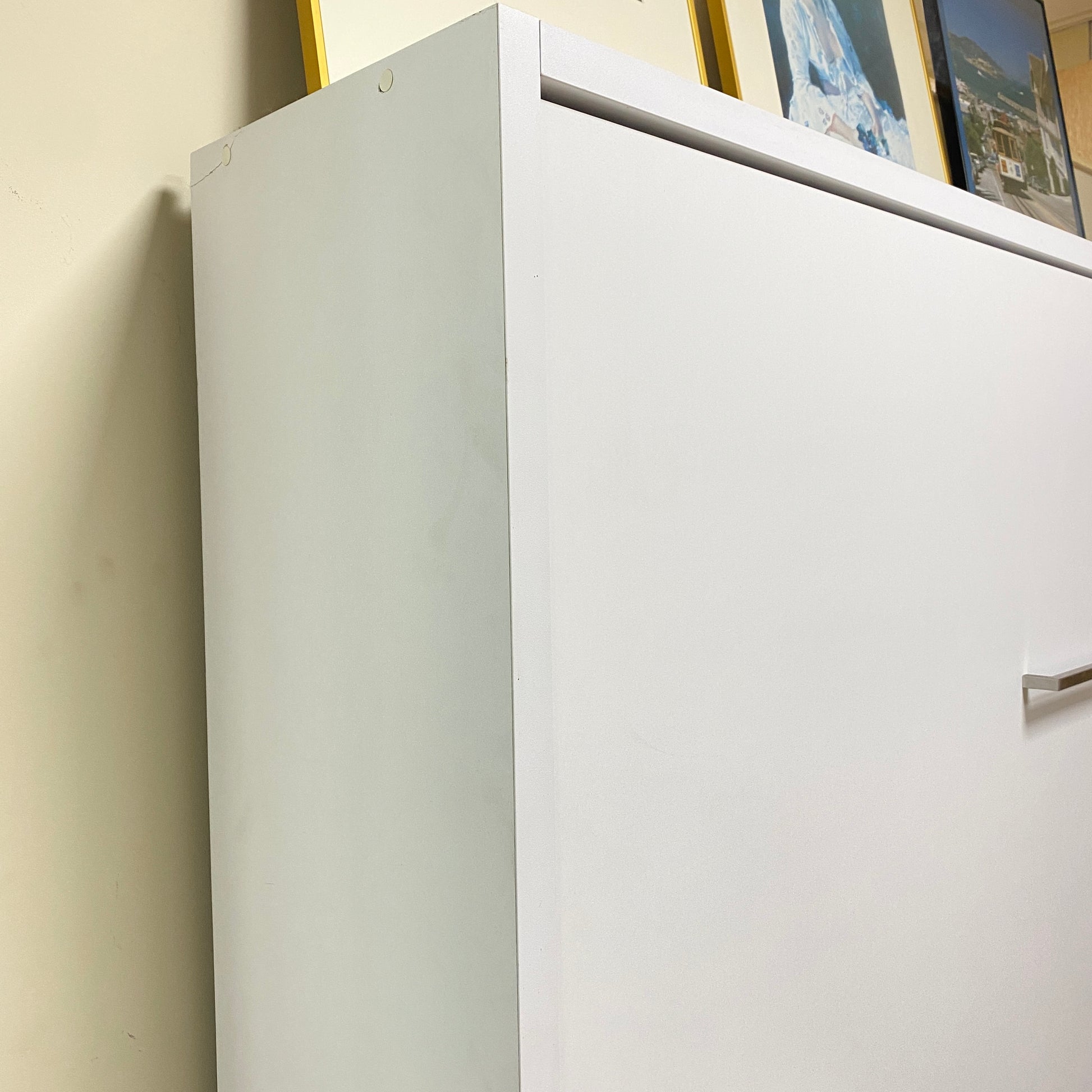 Space-saving pull-down / Murphy bed wall bed with a clean white frame and comfortable mattress. Perfect for compact spaces, guest rooms, or studio apartments.