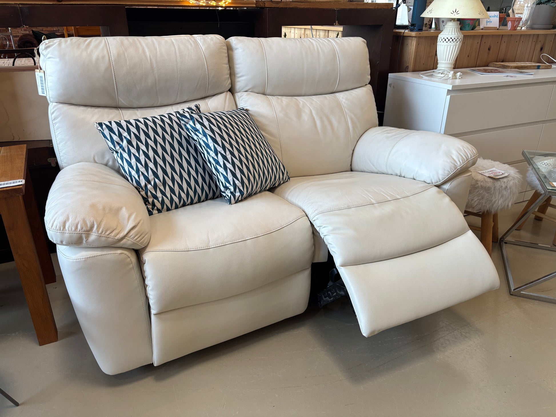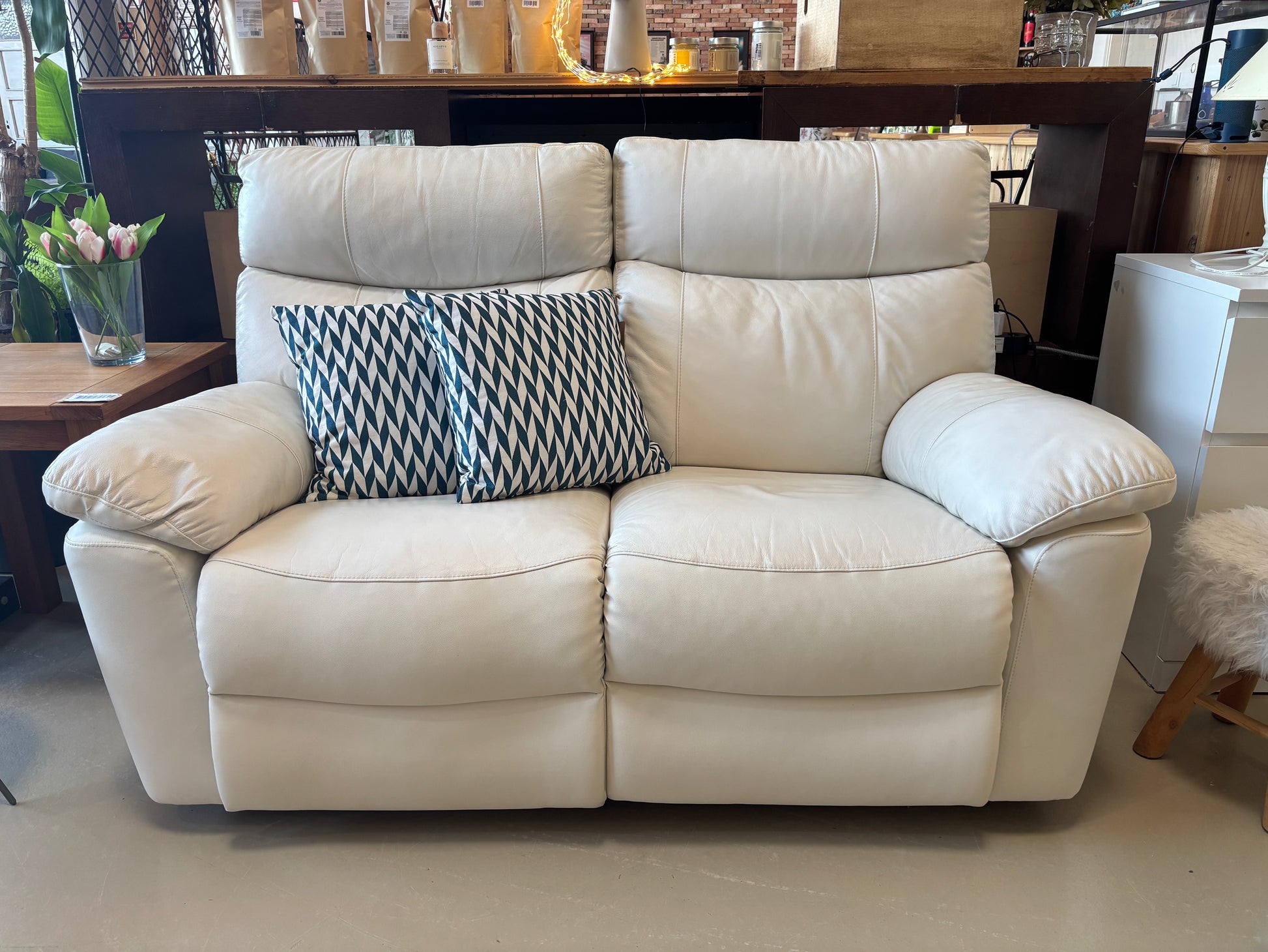 Confortável e compacto Sofá reclinável elétrico em pele branca, concebido para proporcionar relaxamento e conforto no dia a dia.