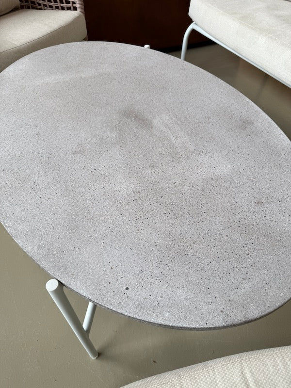 Este moderno conjunto para jardim inclui um sofá de 2 lugares, duas poltronas e uma mesa de centro oval com um prático tampo de pedra. As estruturas são em metal com revestimento em pó para maior durabilidade, com detalhes em corda sintética entrançada que oferecem resistência e proteção contra as intempéries.