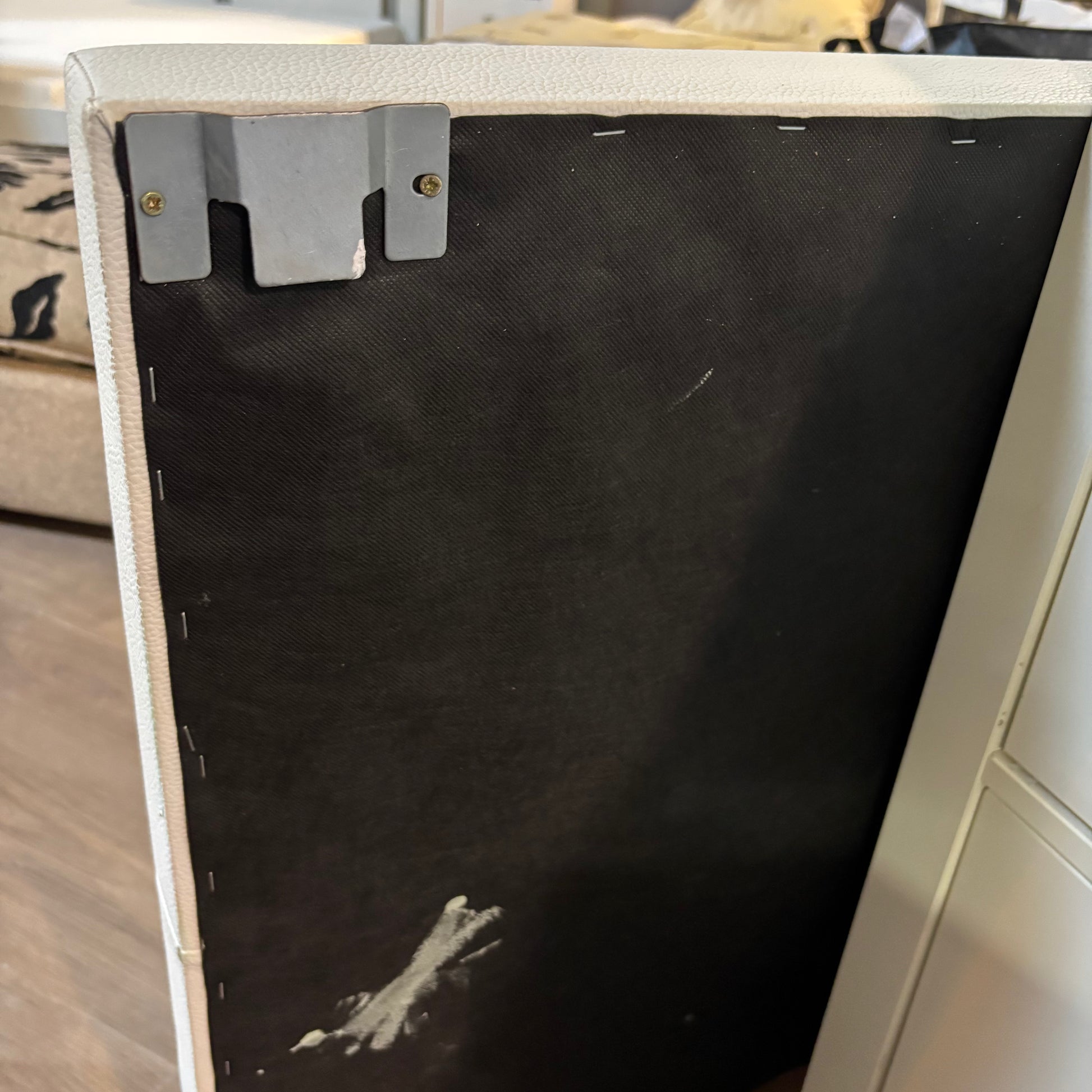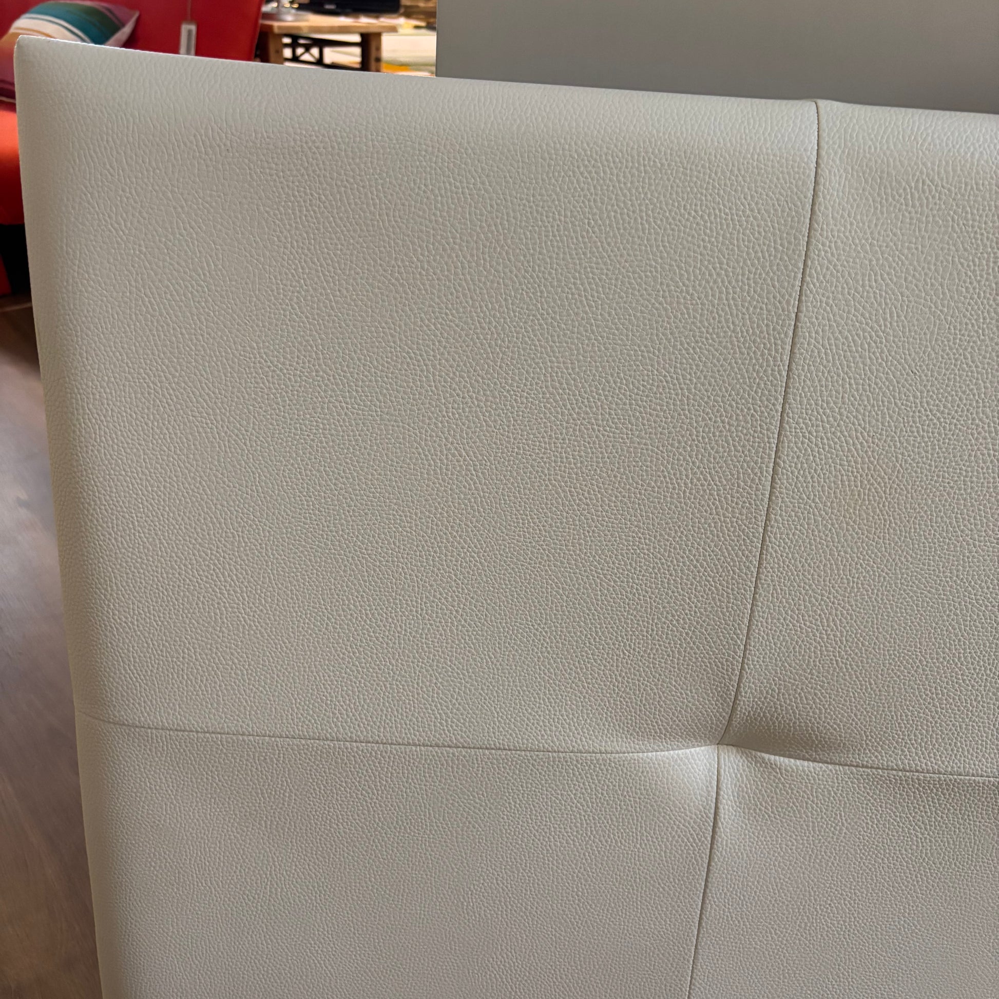 Cream upholstered headboard with button detailing. Adds a soft, sophisticated touch to any bedroom.