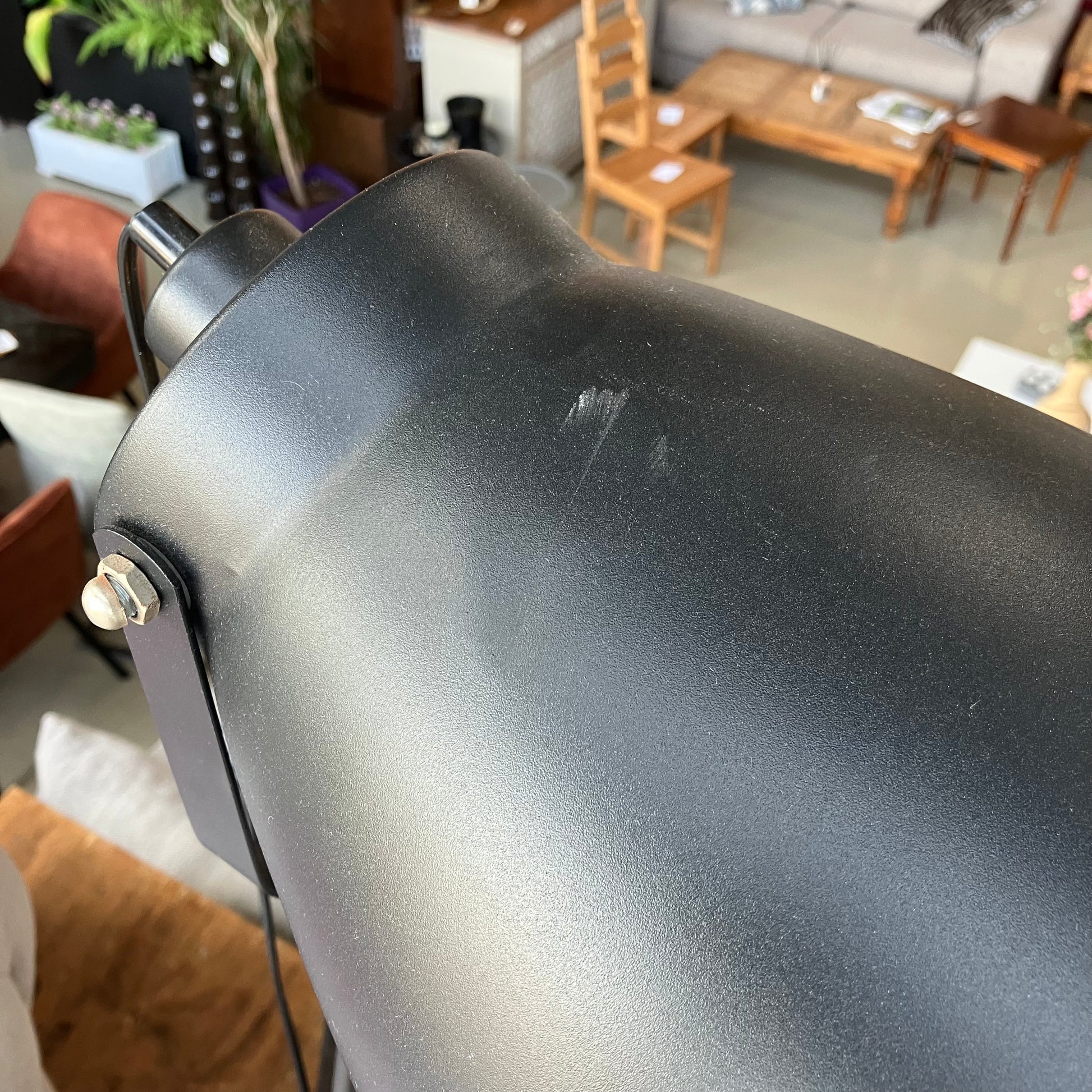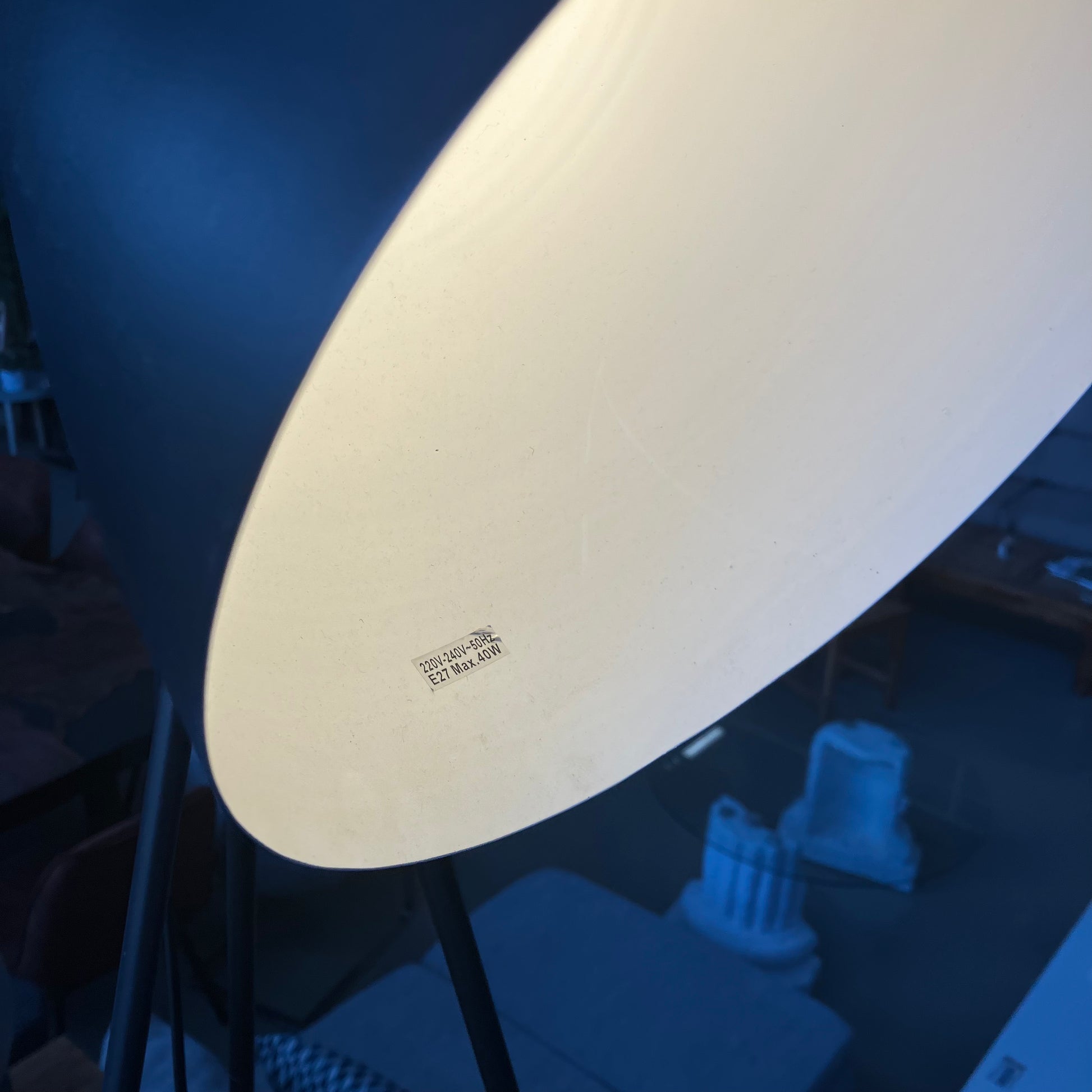 Modern floor lamp with white shade and tripod base. Clean, contemporary design that works well in living rooms or offices.