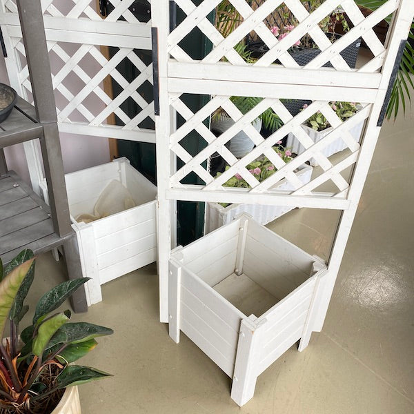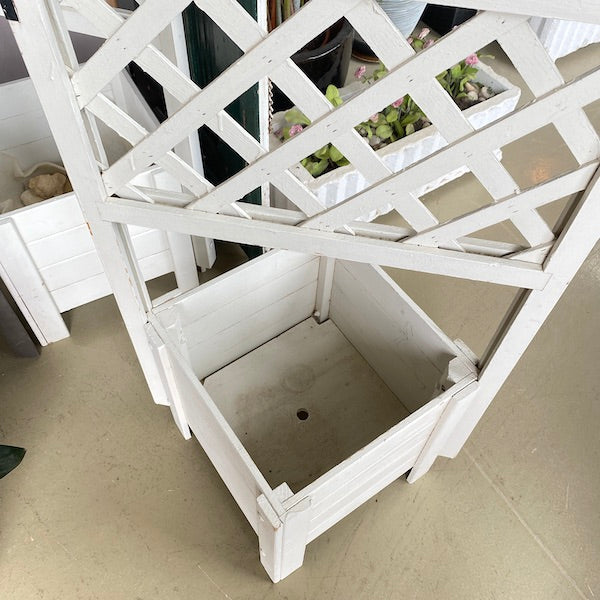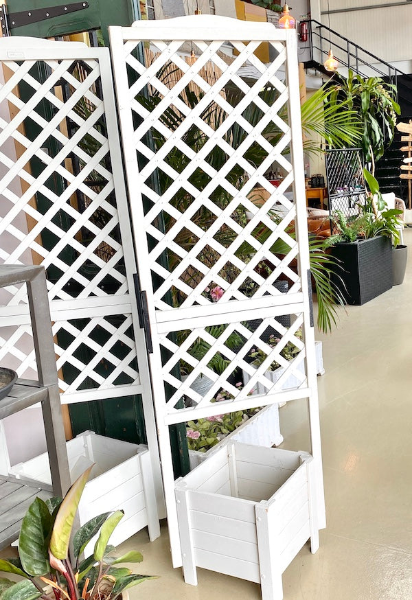 Encantadora treliça branca, perfeita para adicionar estrutura e verde ao seu jardim, pátio ou terraço. Possui uma treliça clássica em forma de X com uma base quadrada, ideal para plantas trepadeiras ou flores coloridas. Duas unidades disponíveis à data da publicação. Preço por unidade.