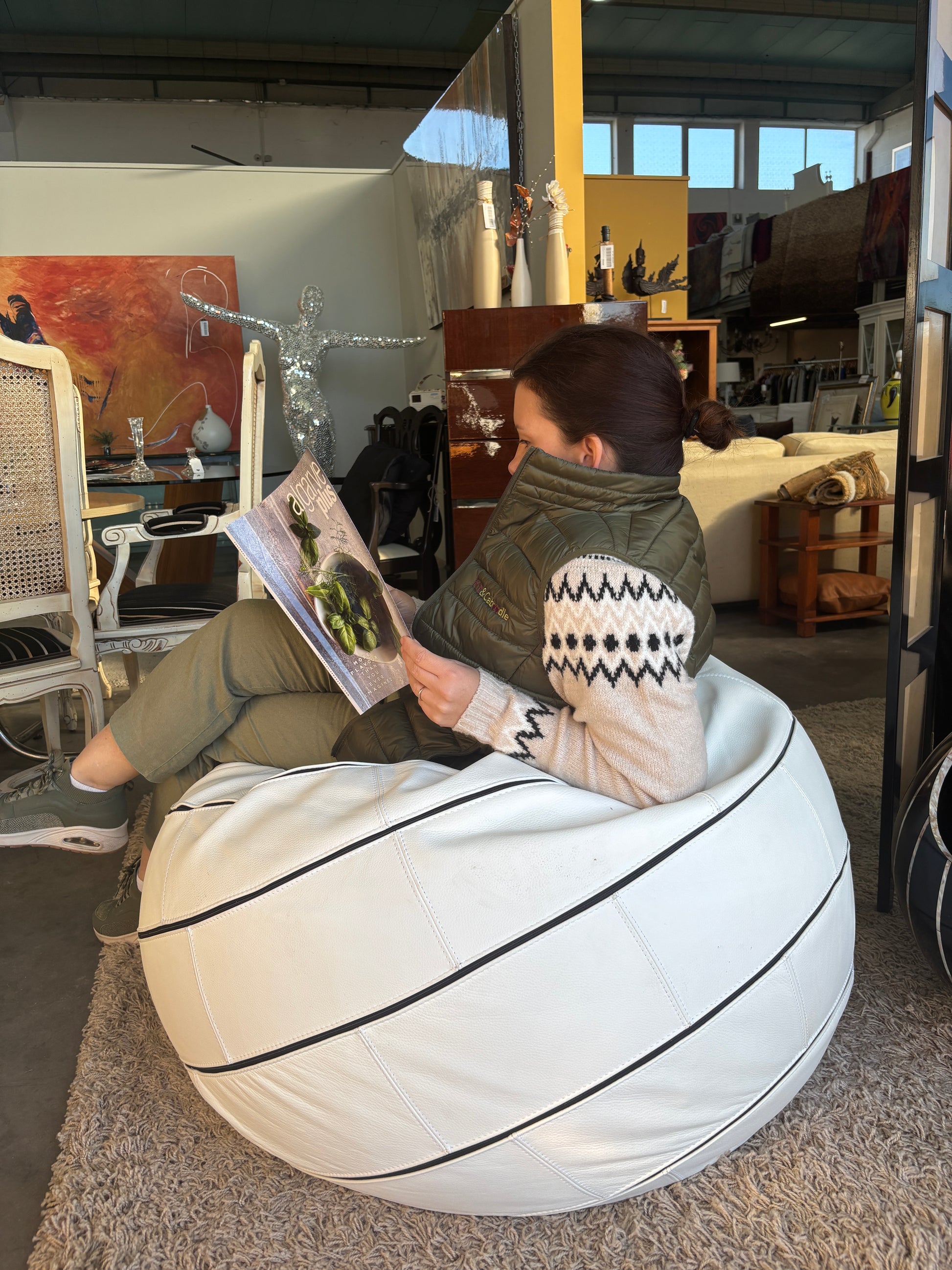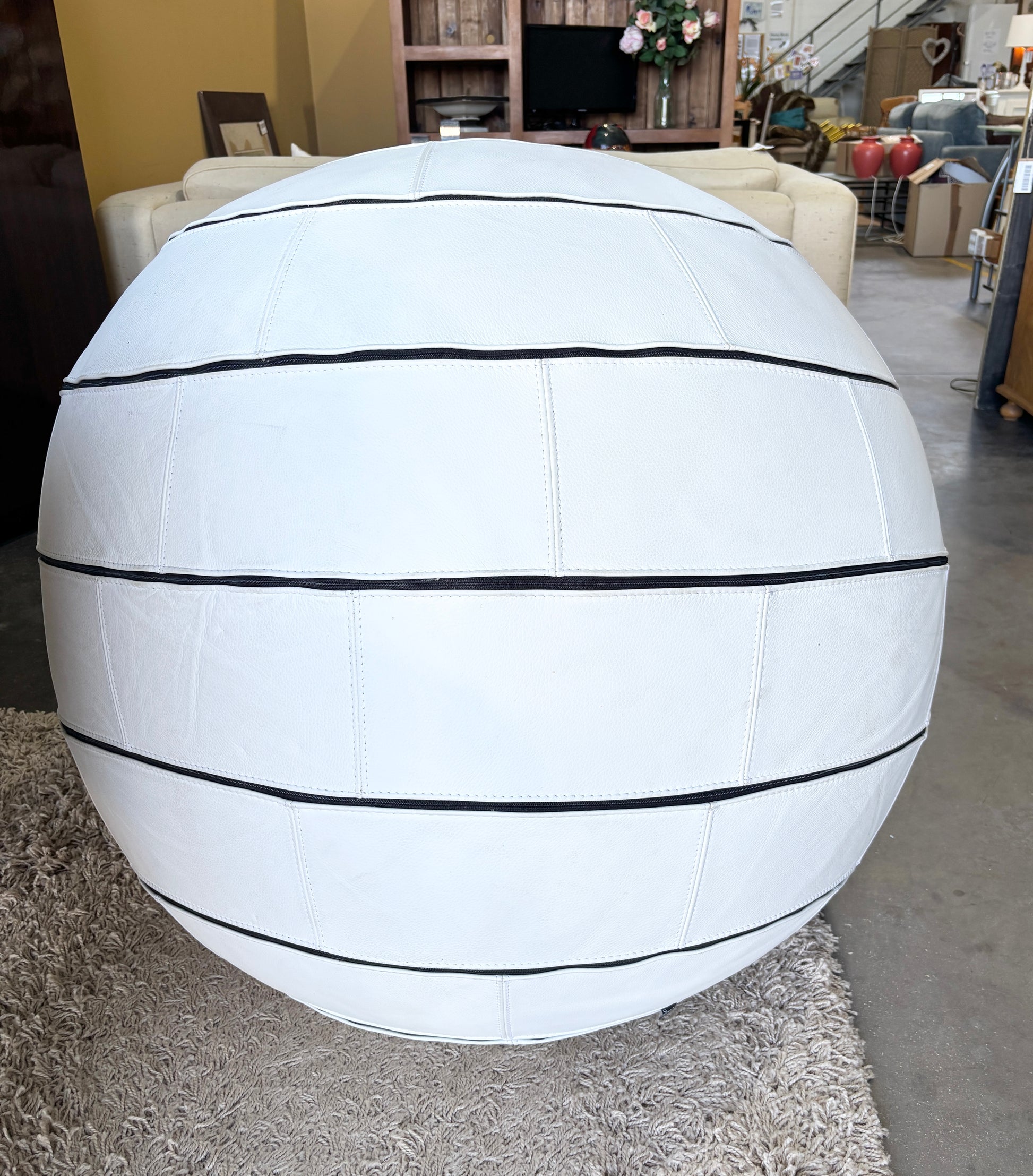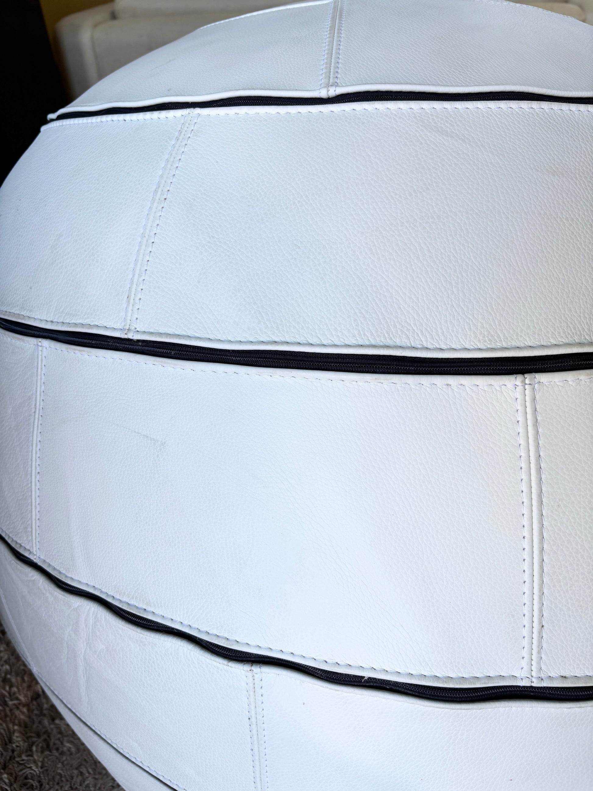 Veja esta bola de descanso escultural em pele branca, criada pelos designers de mobiliário holandeses da LEOLUX. A bola molda-se ao corpo quando se senta nela e volta à sua forma esférica original quando se levanta. Temos três unidades disponíveis, vendidas em separado por uma fração do preço original.