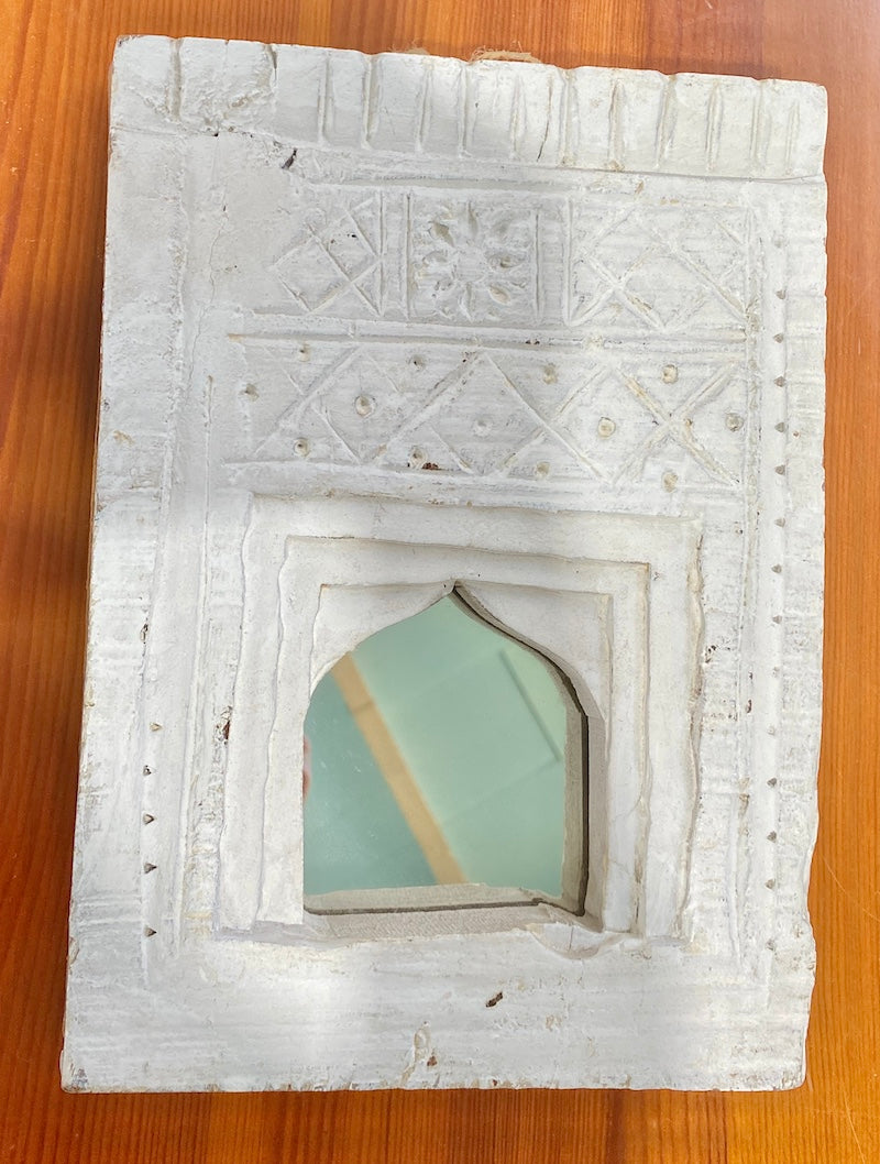 Feito à mão na Índia, este pequeno espelho com uma moldura robusta seria um belo artigo para o exterior.