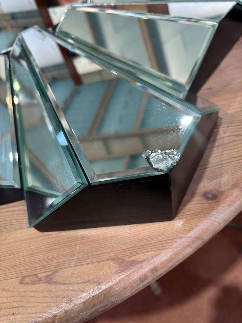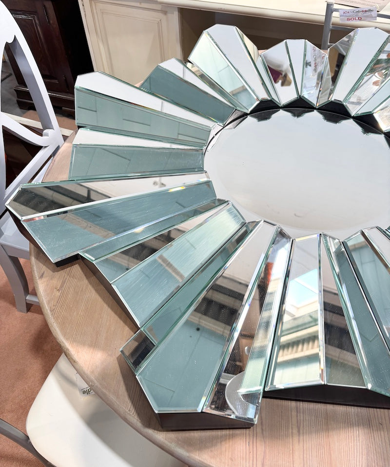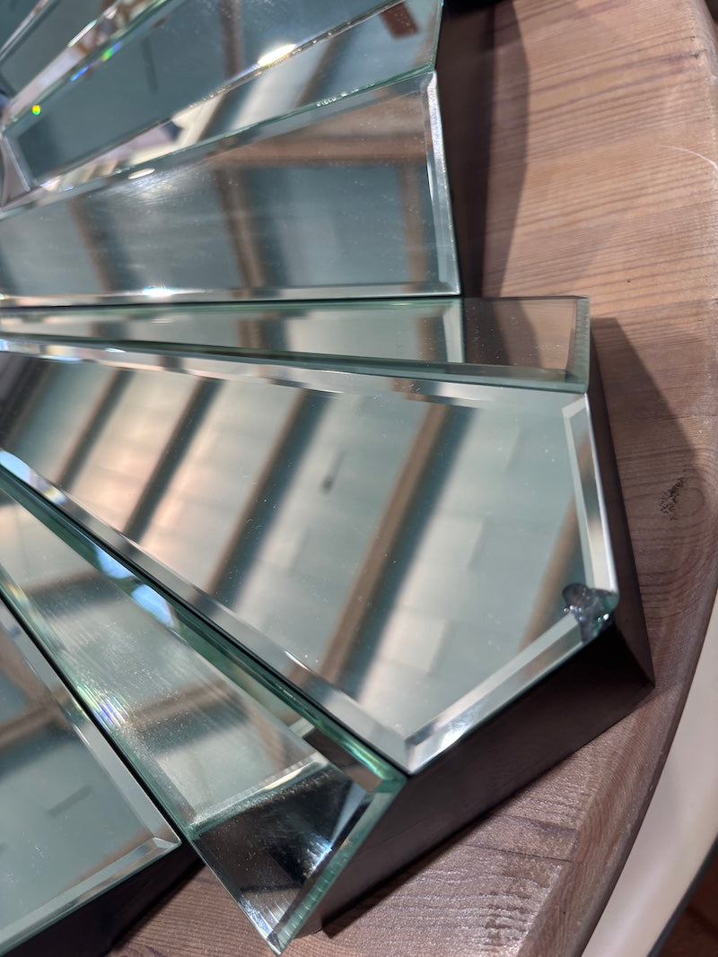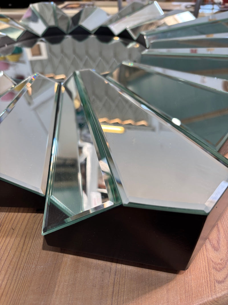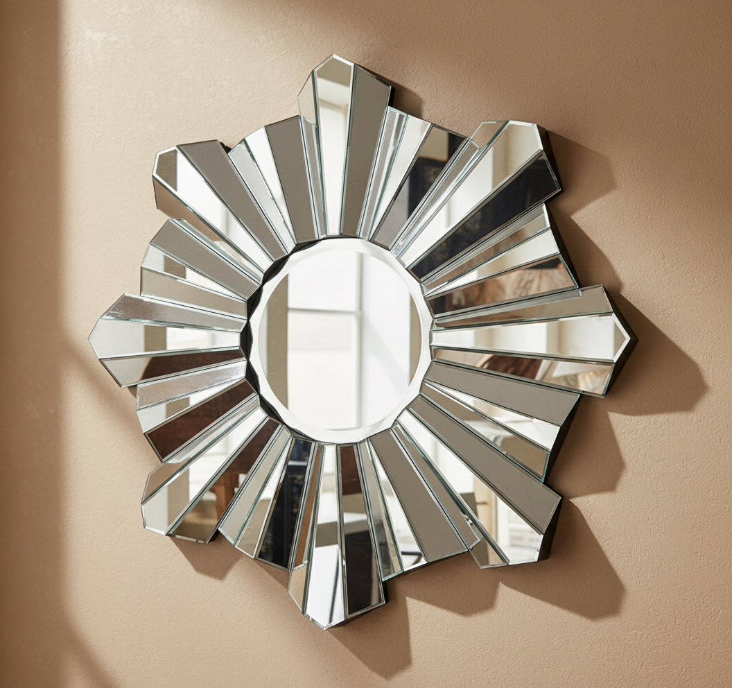 Este impressionante espelho redondo em forma de estrela apresenta espirais geométricas arrojadas que chamam a atenção. O seu design angular capta e dispersa a luz por todo o ambiente, criando um ponto focal dinâmico para qualquer divisão.
