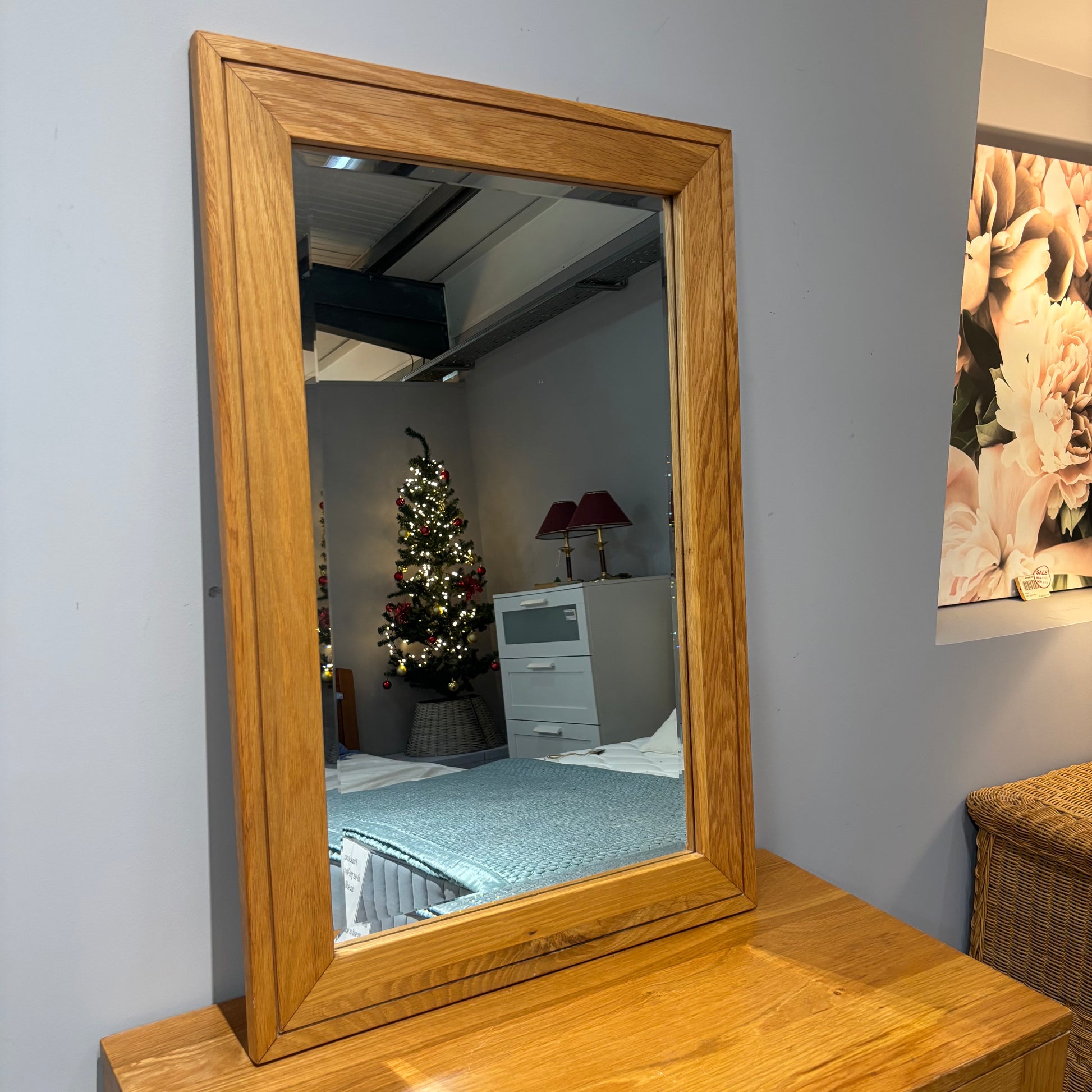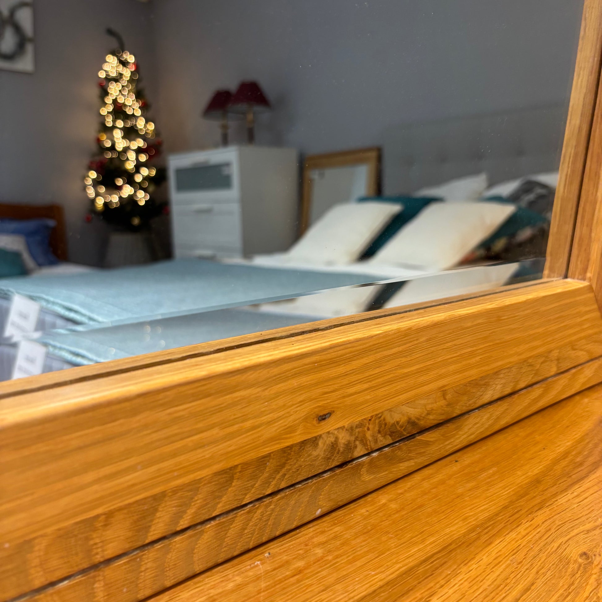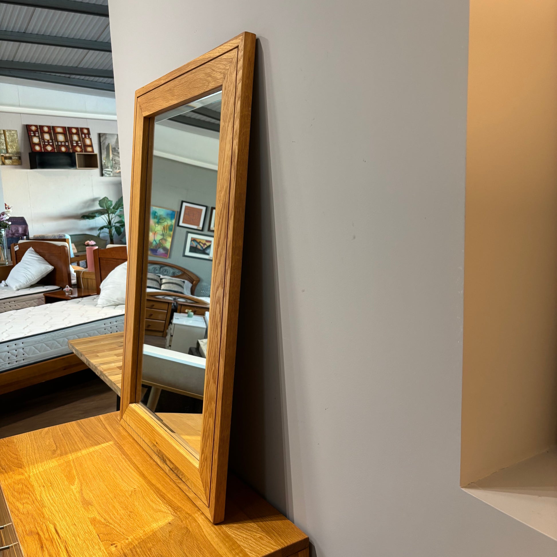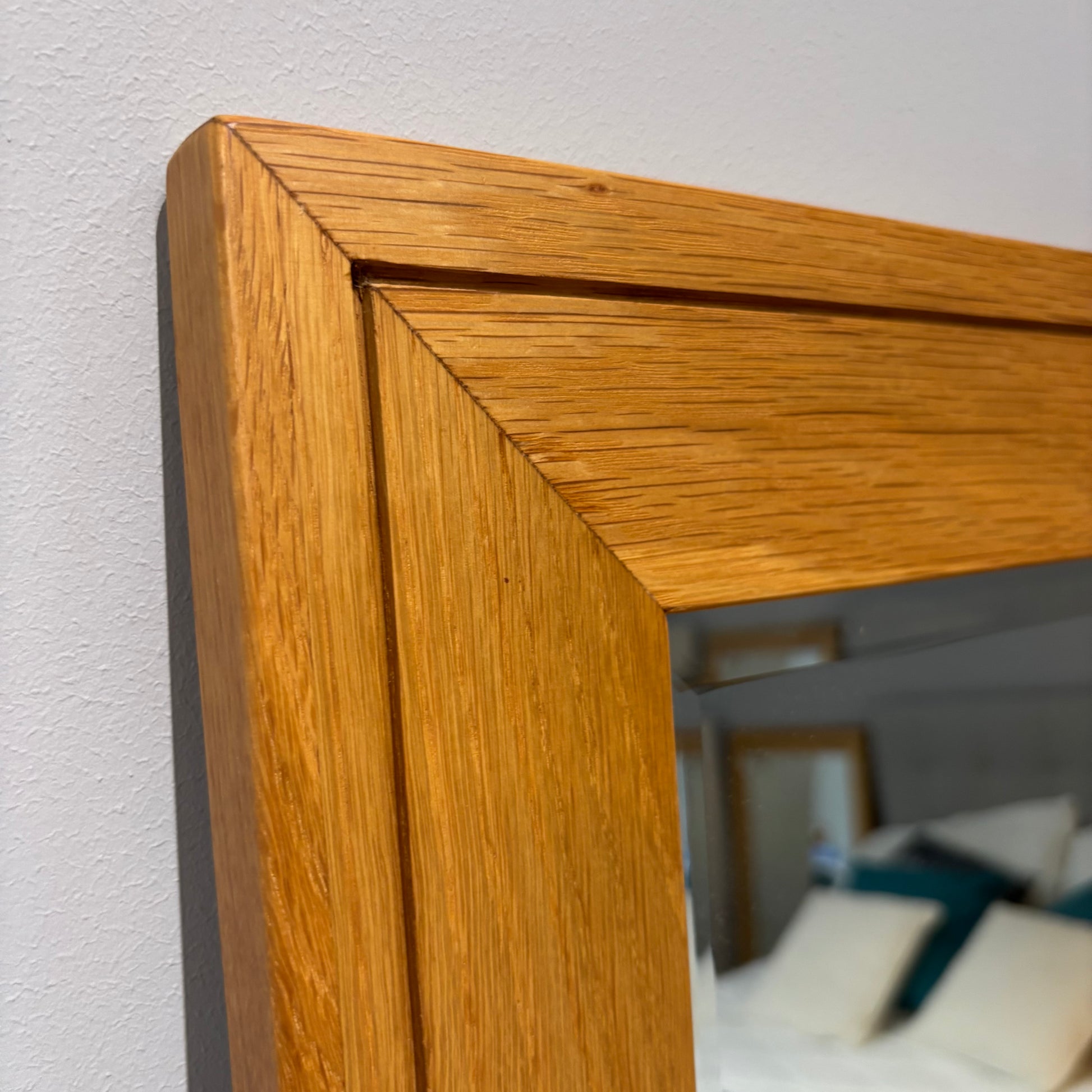 Espelho com moldura em madeira e acabamento natural em tons quentes. Linhas simples e clássicas que combinam na perfeição com diferentes estilos de mobiliário.