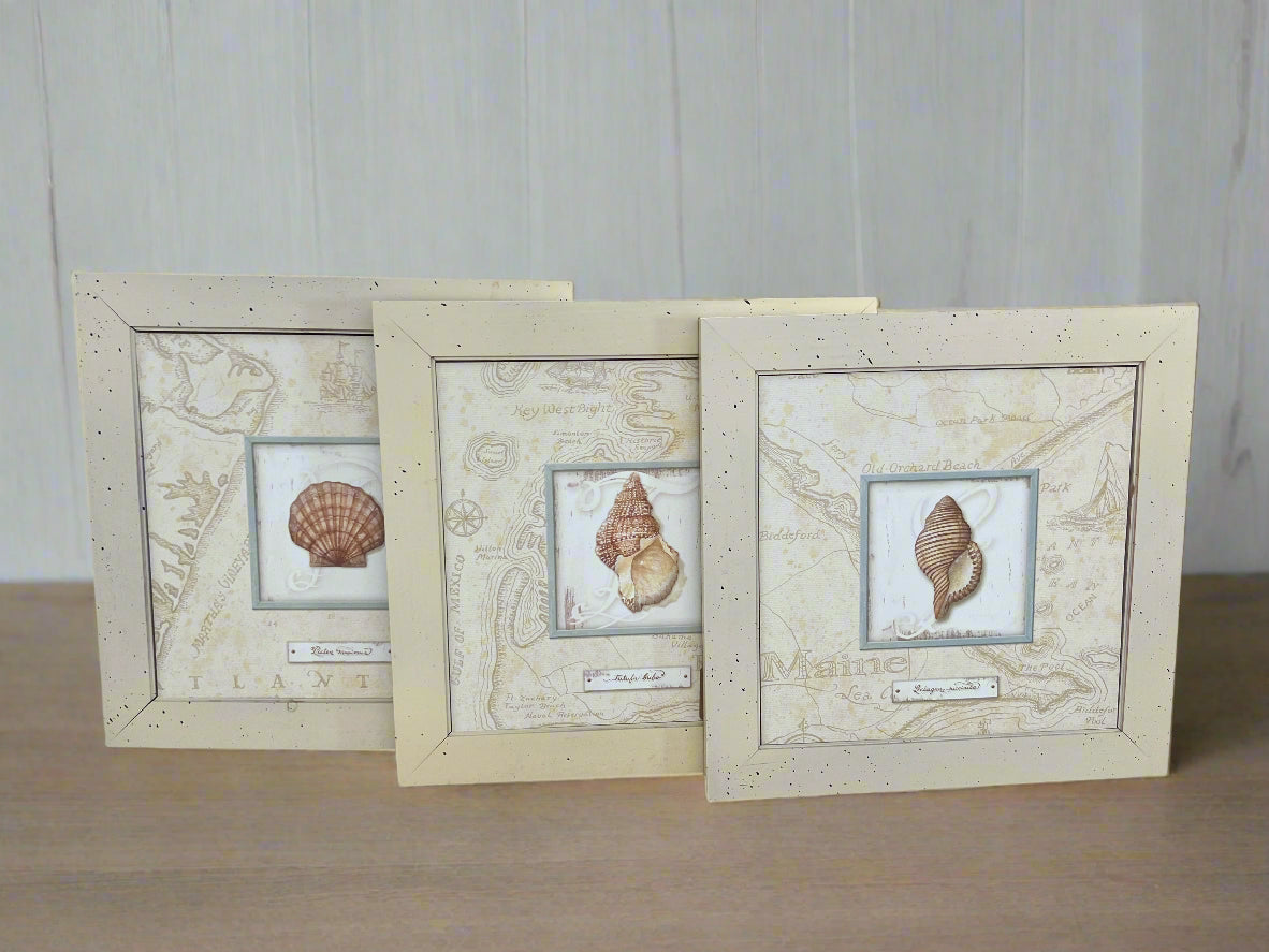 Estas pinturas mostram a beleza delicada de uma única concha em cada moldura. Ideais para adicionar um toque costeiro subtil e requintado a qualquer espaço.