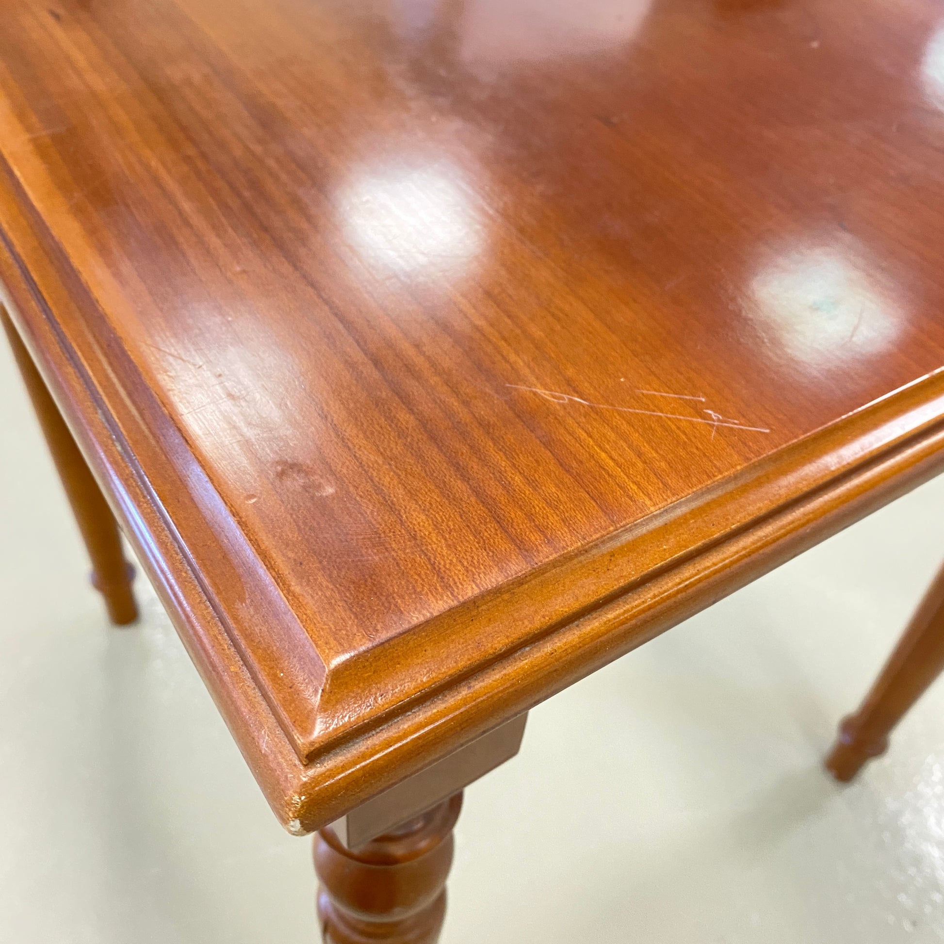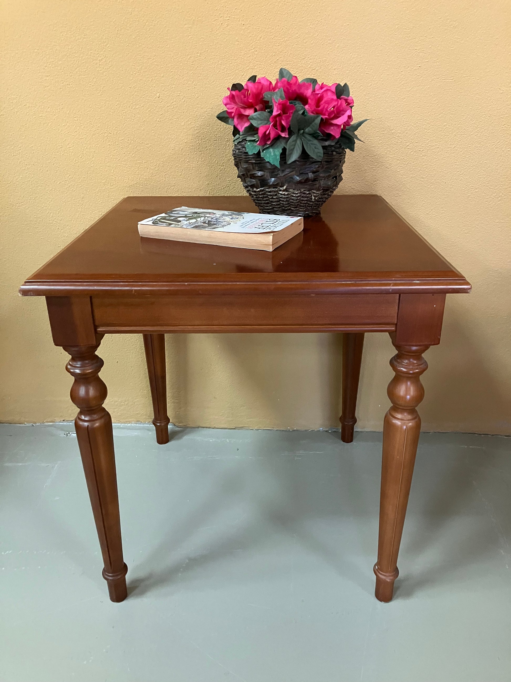 Elegante mesa lateral de madeira com pernas torneadas e acabamento polido. Um complemento perfeito para qualquer sala de estar ou quarto.