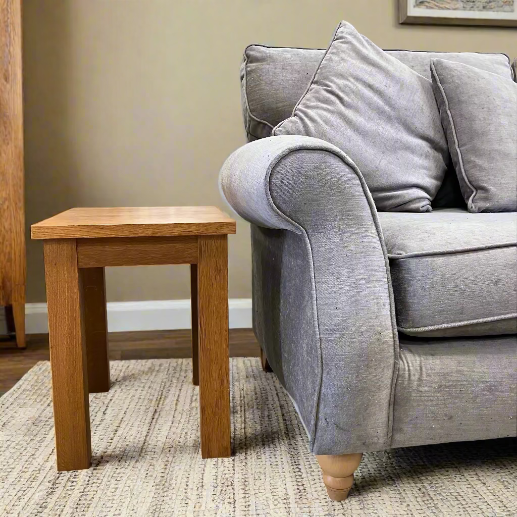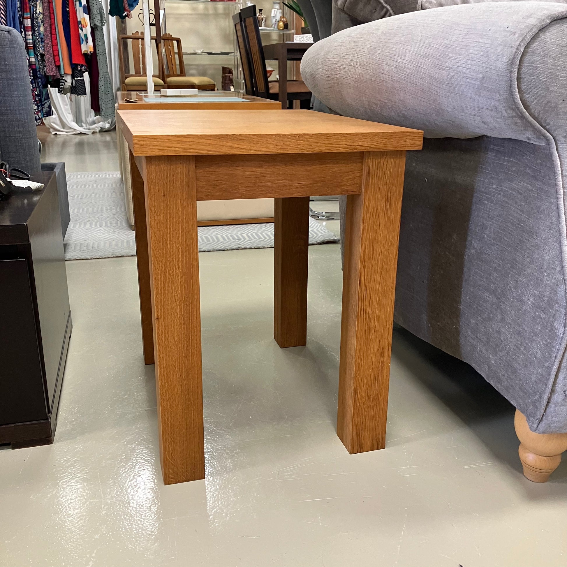 Chunky oak coffee table with smooth finish. Ideal for living room centerpiece.