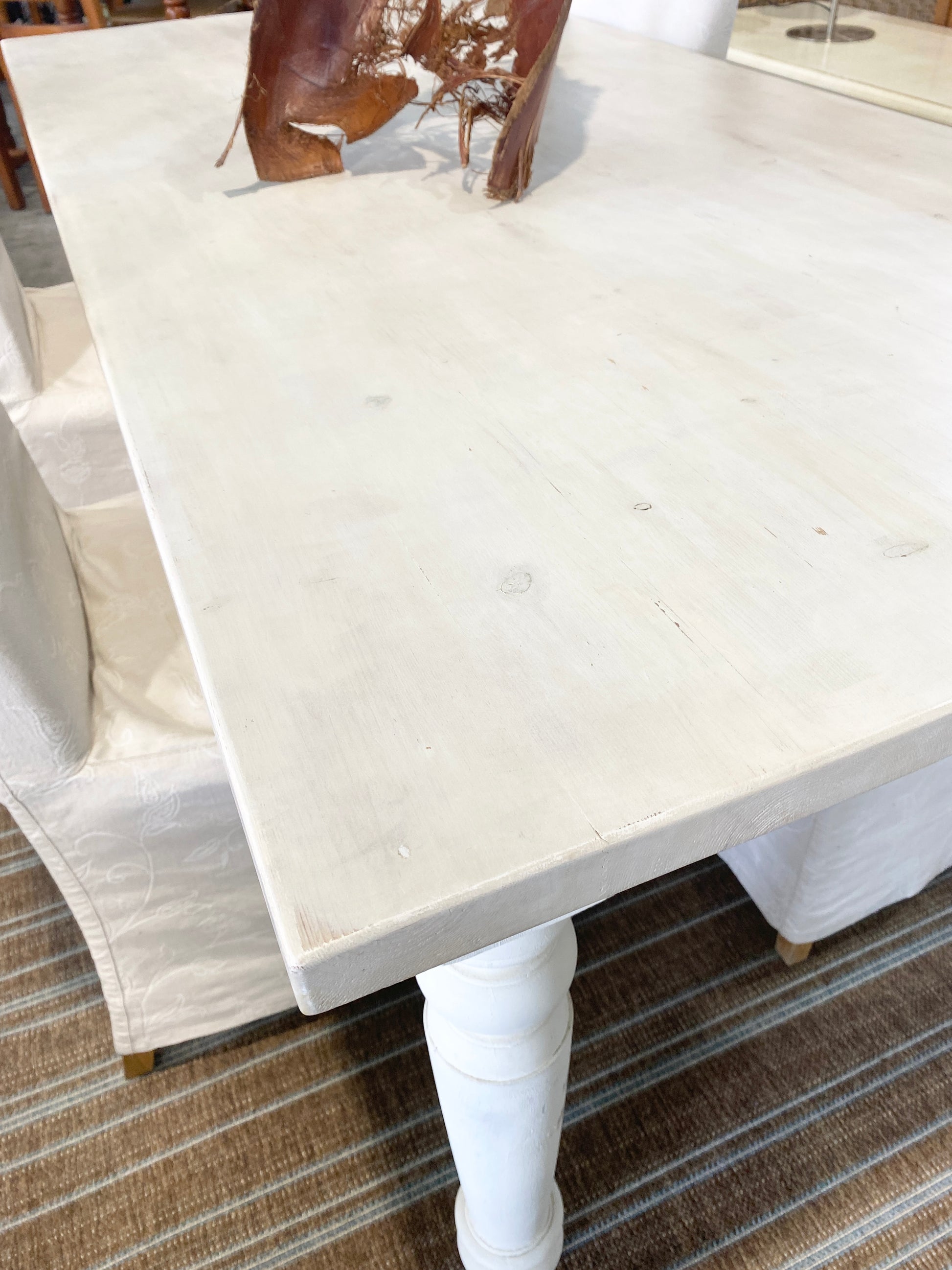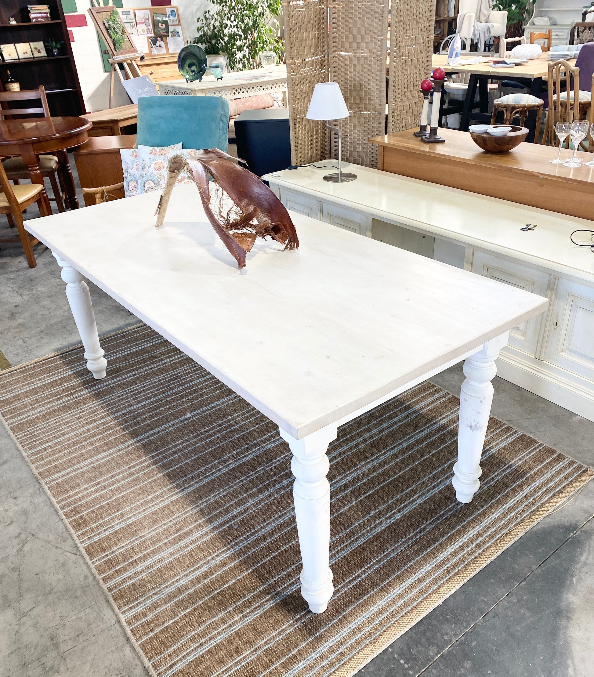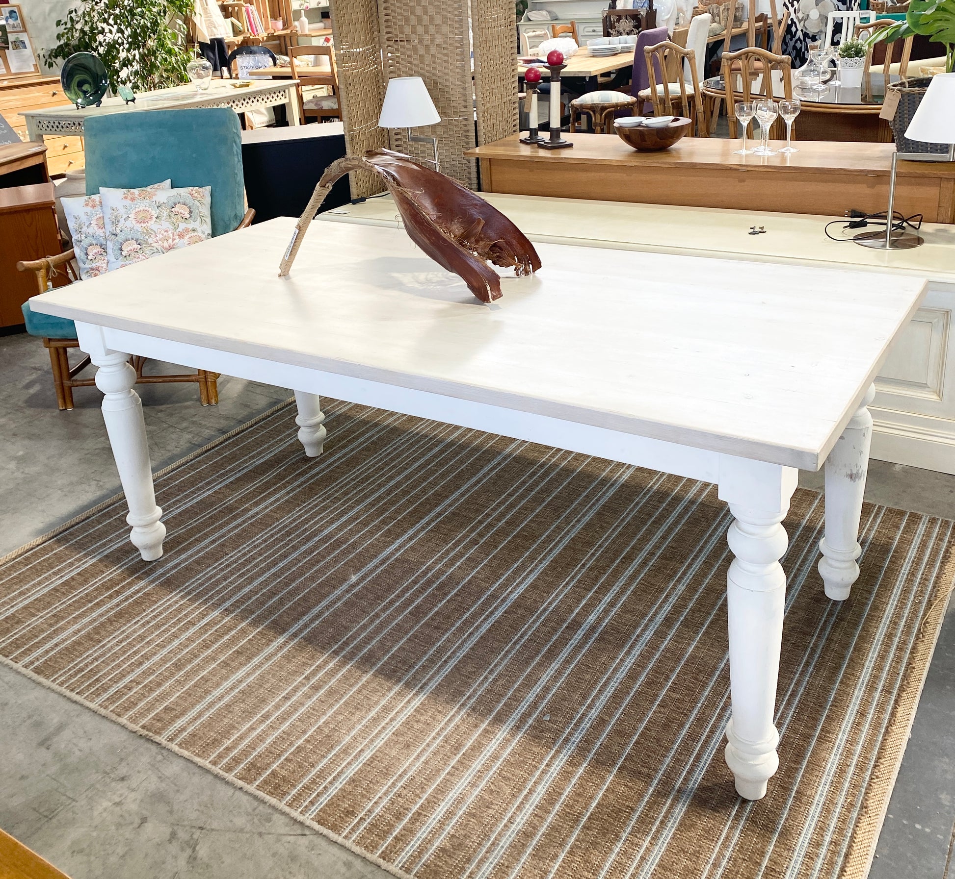 Esta charmosa mesa em madeira maciça confere um toque alegre e alegre a qualquer ambiente com o seu acabamento em branco que realça os veios naturais. As suas pernas torneadas acrescentam um toque clássico, combinando o estilo artesanal clássico.