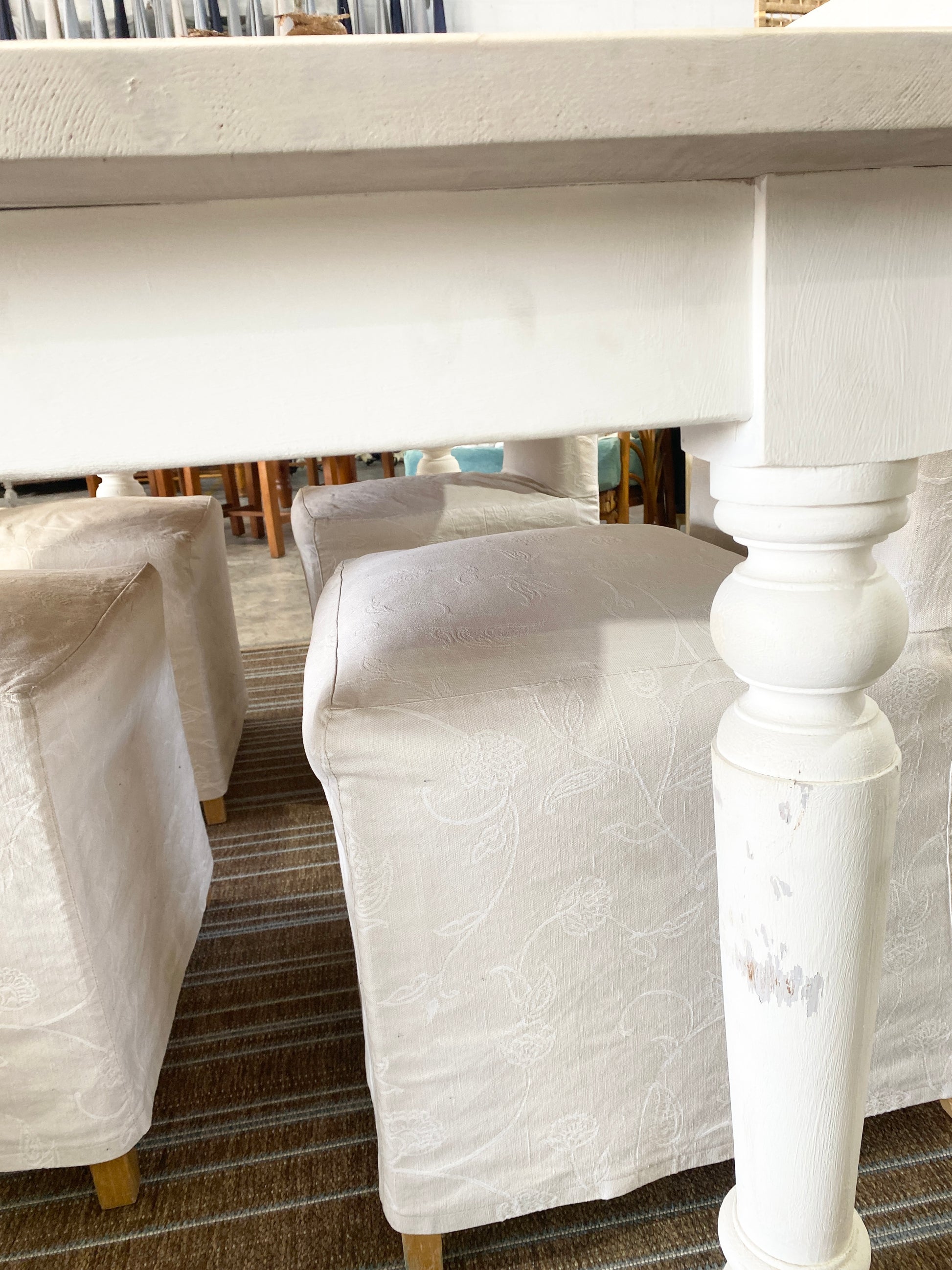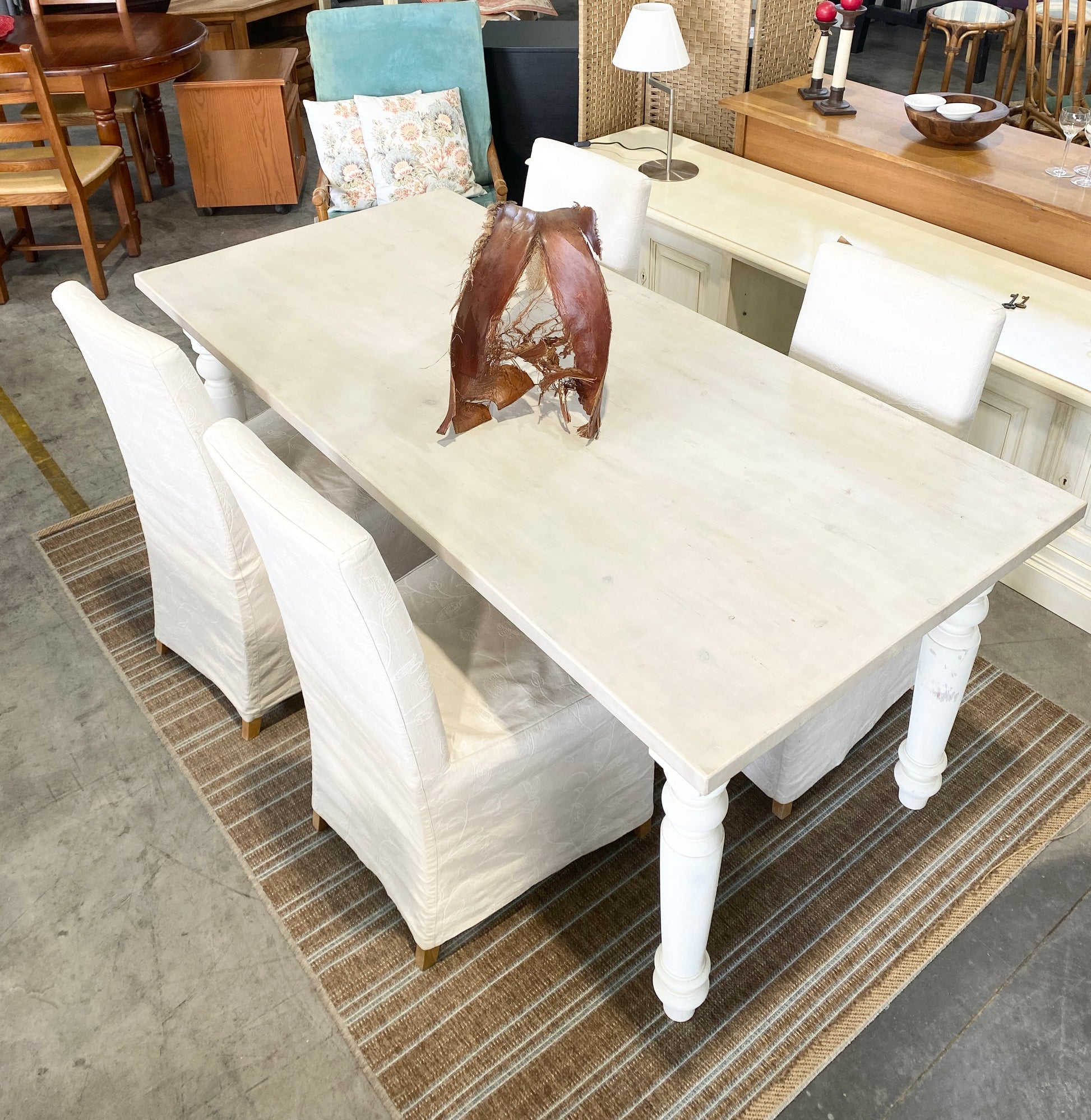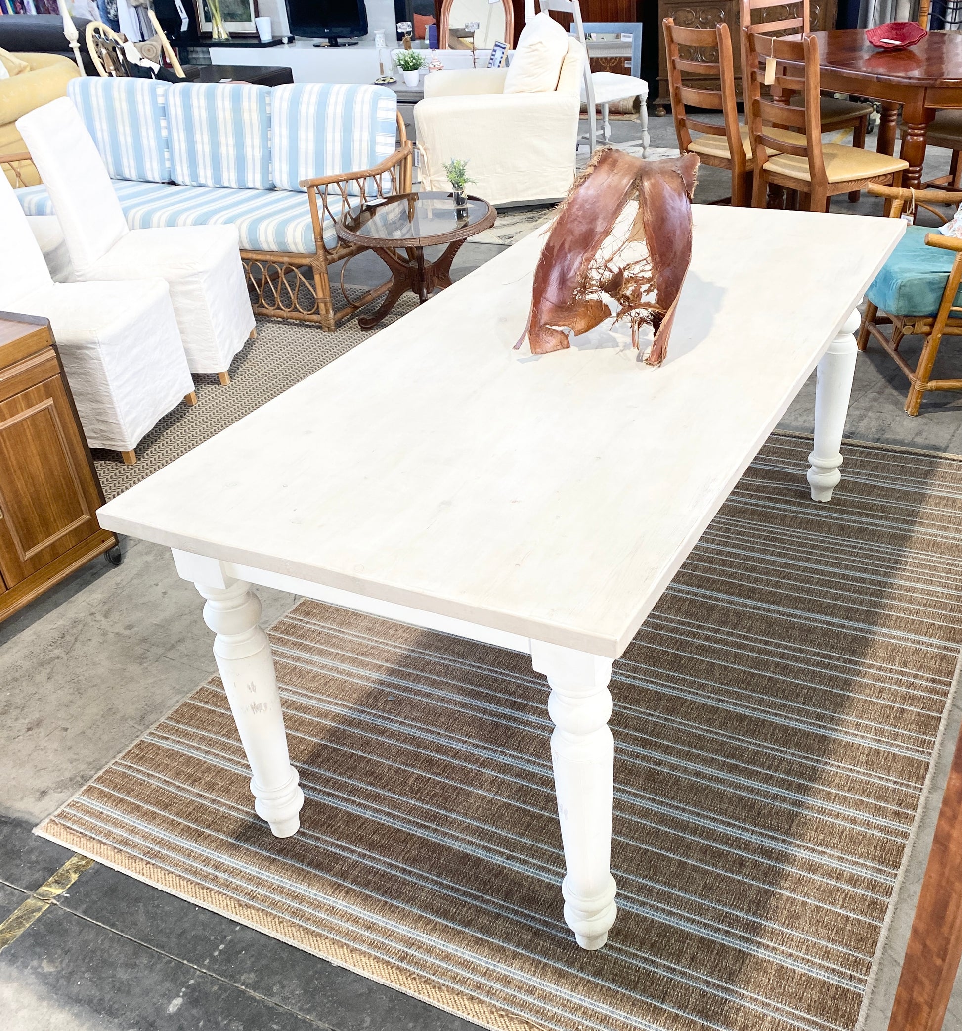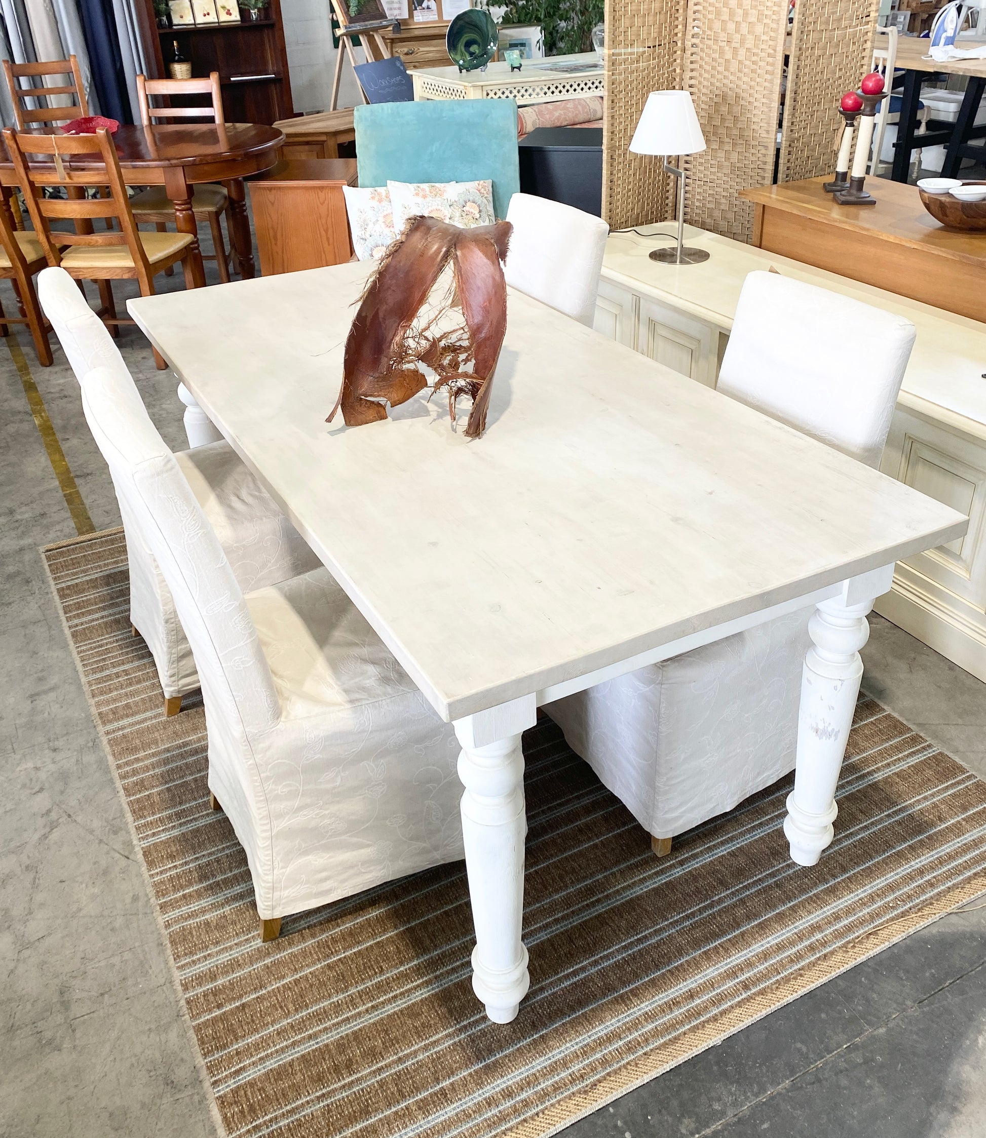 Esta charmosa mesa em madeira maciça confere um toque alegre e alegre a qualquer ambiente com o seu acabamento em branco que realça os veios naturais. As suas pernas torneadas acrescentam um toque clássico, combinando o estilo artesanal clássico.