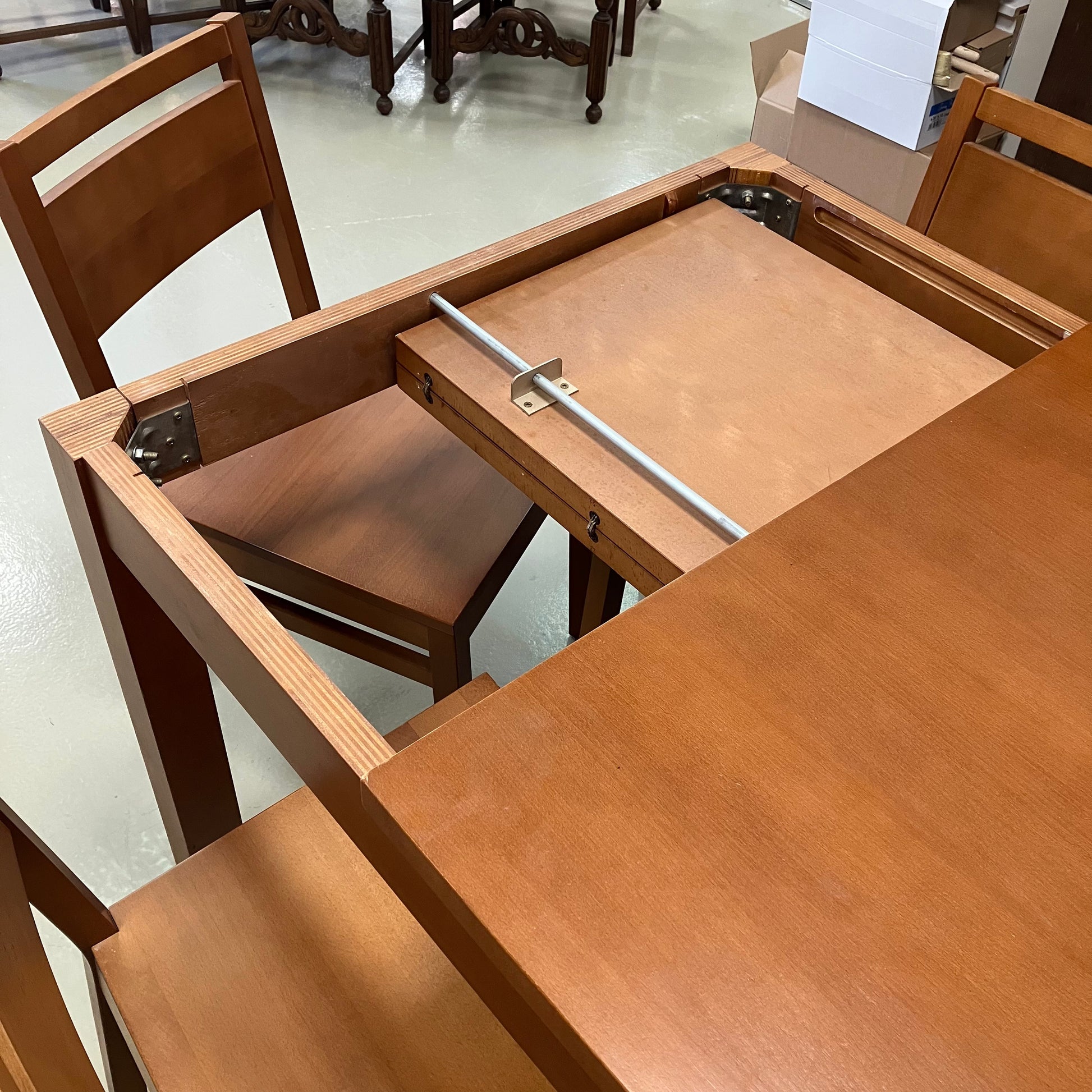 Um conjunto de jantar em madeira resistente com mesa extensível retangular e seis cadeiras a condizer. Perfeito para refeições ou reuniões em família, este conjunto oferece conforto e estilo intemporal.