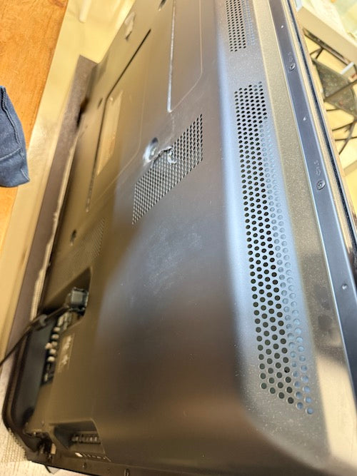 TV de ecrã plano Panasonic Viera com moldura preta fina e comando à distância. Este modelo possui controlos integrados no painel lateral. Seja para ver a sua série favorita ou TV em direto, oferece uma qualidade de imagem nítida e cabe confortavelmente num suporte de multimédia ou pode ser fixada à parede.