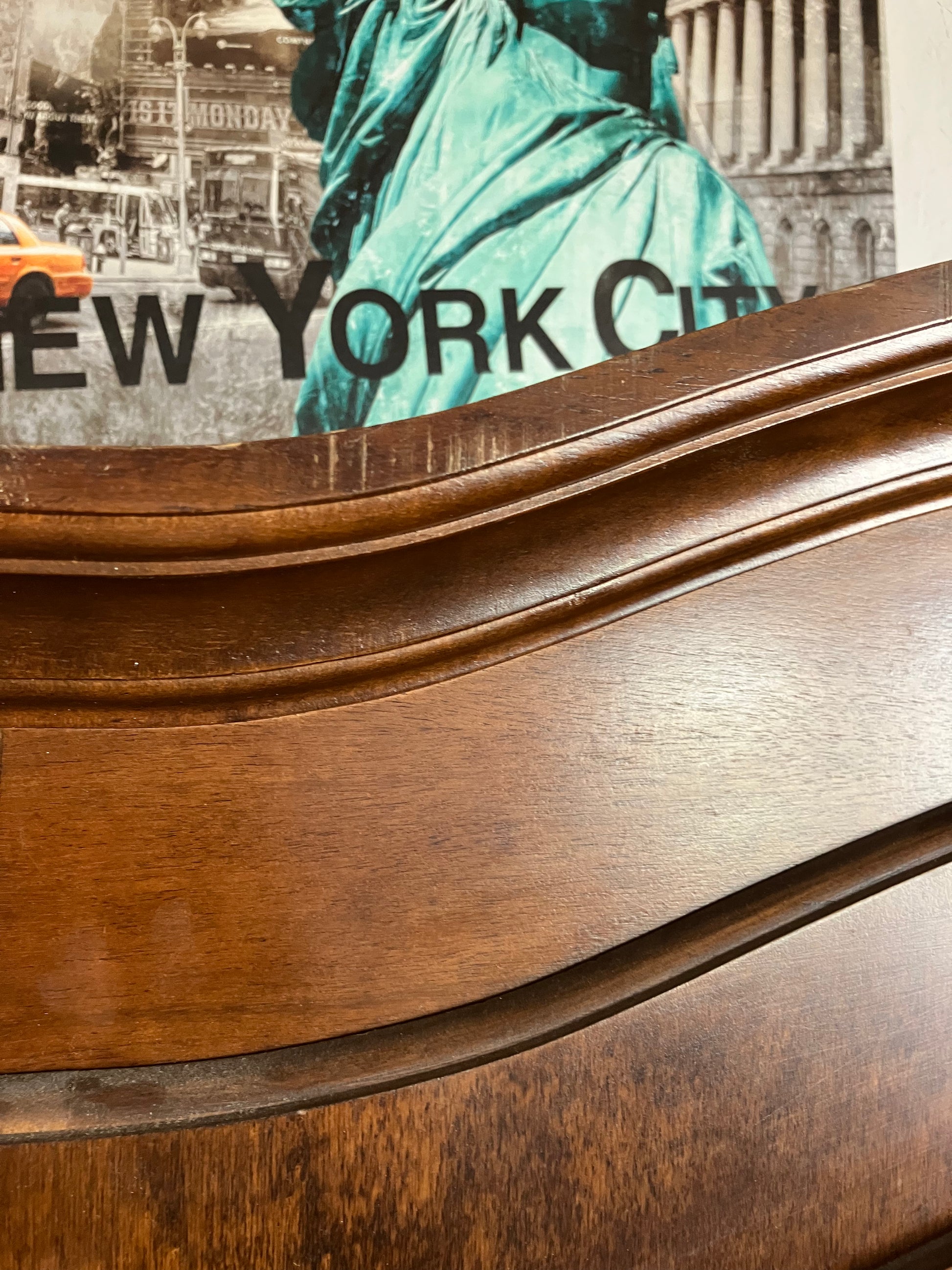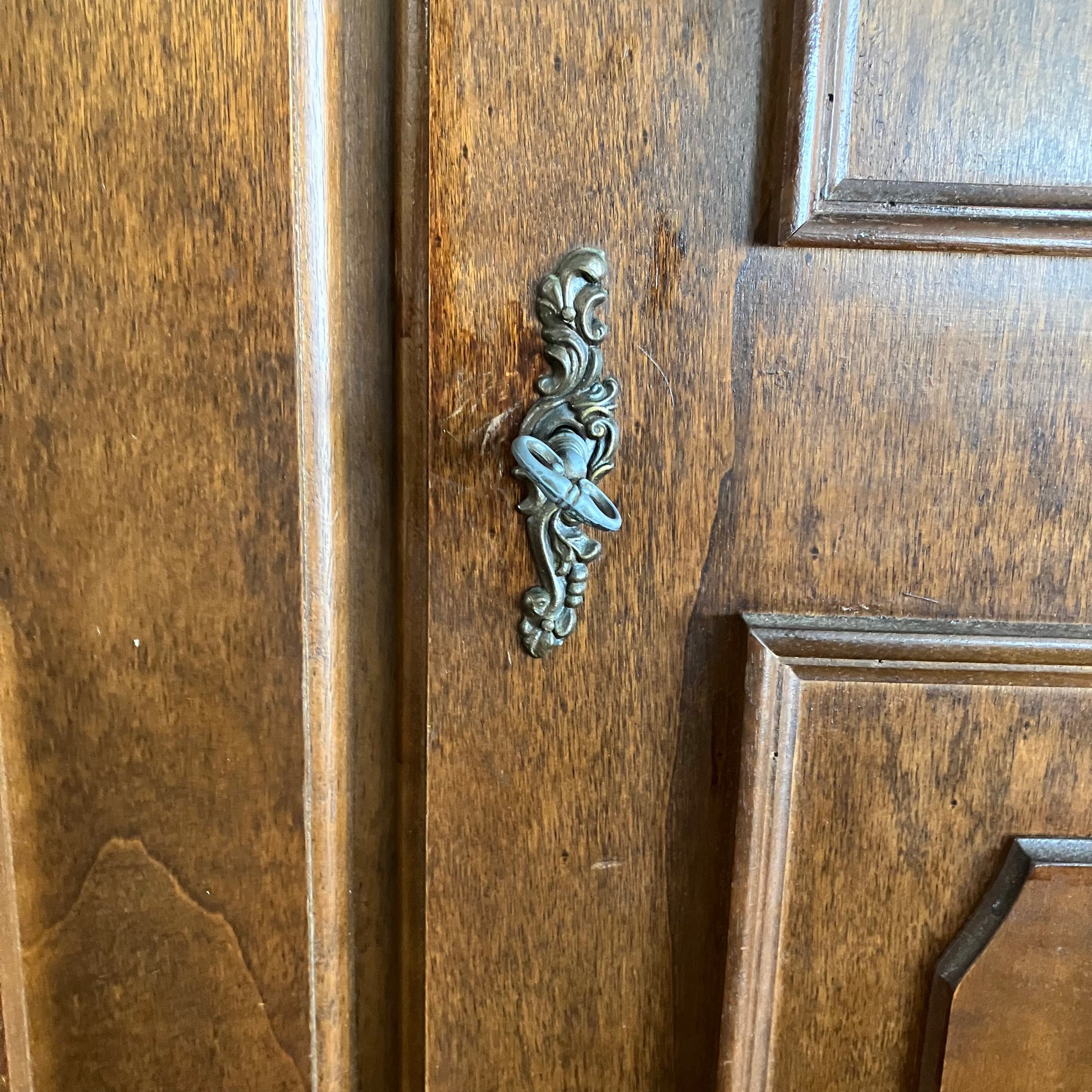 A beautiful solid wood armoire with a gently curved top and panelled double doors. Inside, it offers plenty of space for hanging clothes or storing linens. The classic craftsmanship and warm wood finish make it a versatile storage piece for bedrooms, guest rooms, or hallways.