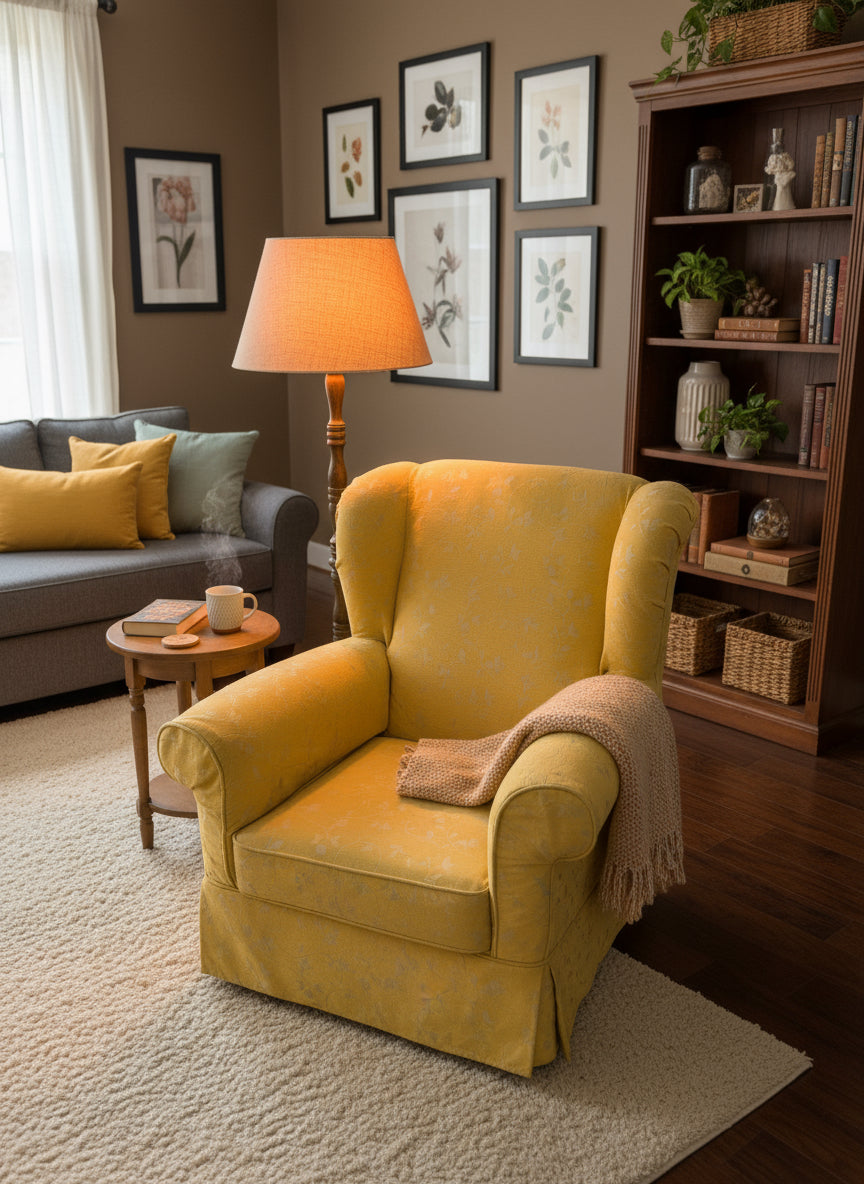 Esta poltrona amarela combina cores vibrantes com um trabalho artesanal especializado para elevar qualquer ambiente. O seu design ergonómico garante um assento confortável, enquanto o estofamento durável oferece uma resistência duradoura ao desgaste.